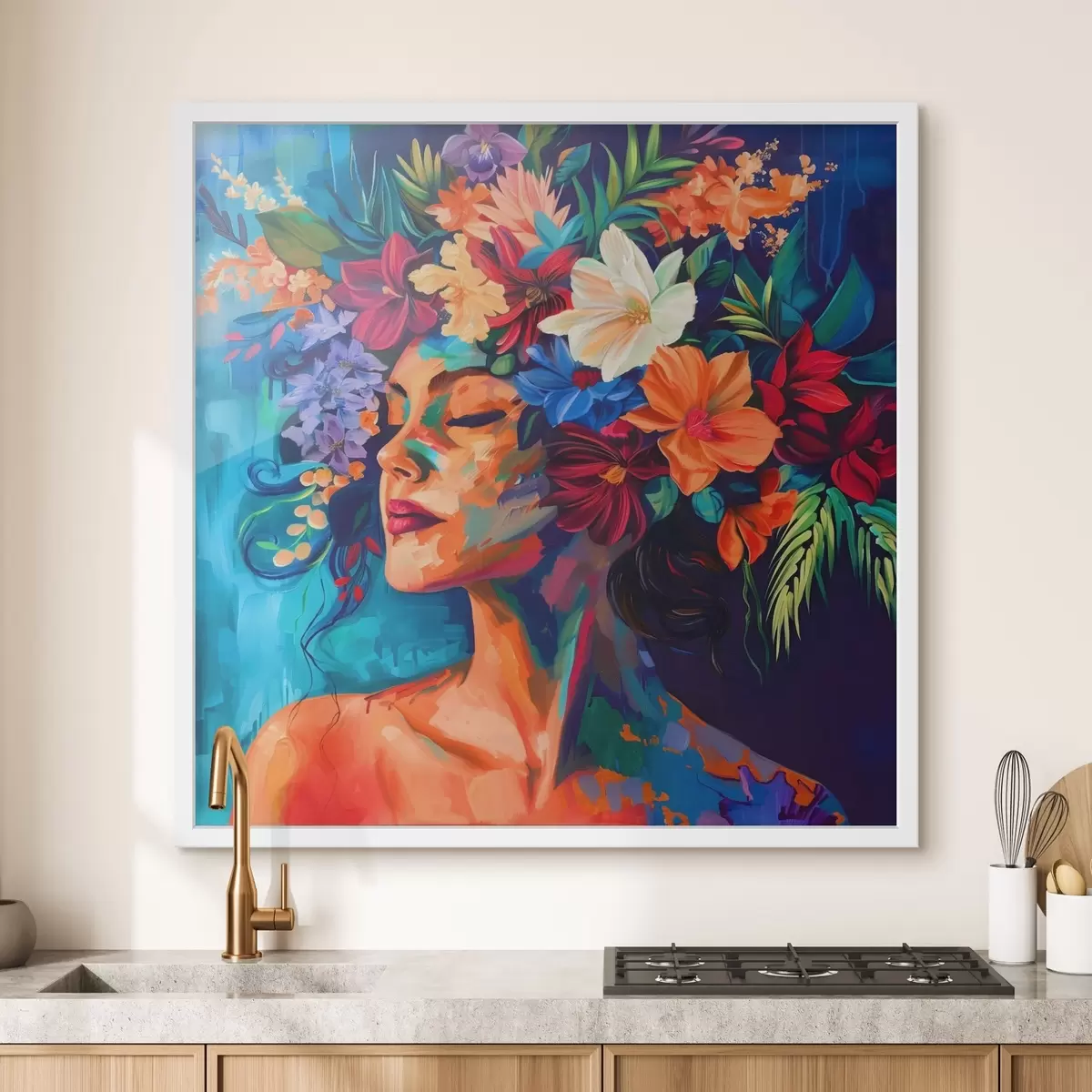 Plakatas Vaizdas, rodantis moterį su gėlėmis plaukuose f38574