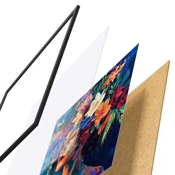 Plakatą sudaro rėmas, pleksiklas, atspausdintas vaizdas ir medžio drožlių plokštės pagrindas. Plakatą galima iš karto pakabinti ant sienos dėl kitoje pusėje esančių laikiklių.