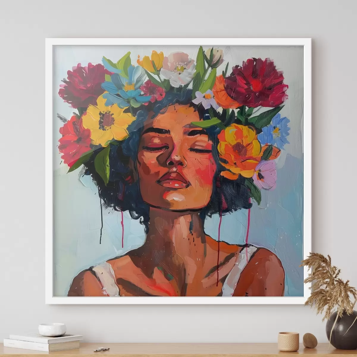Plakatas Vaizdas, rodantis moterį su gėlėmis plaukuose f38575