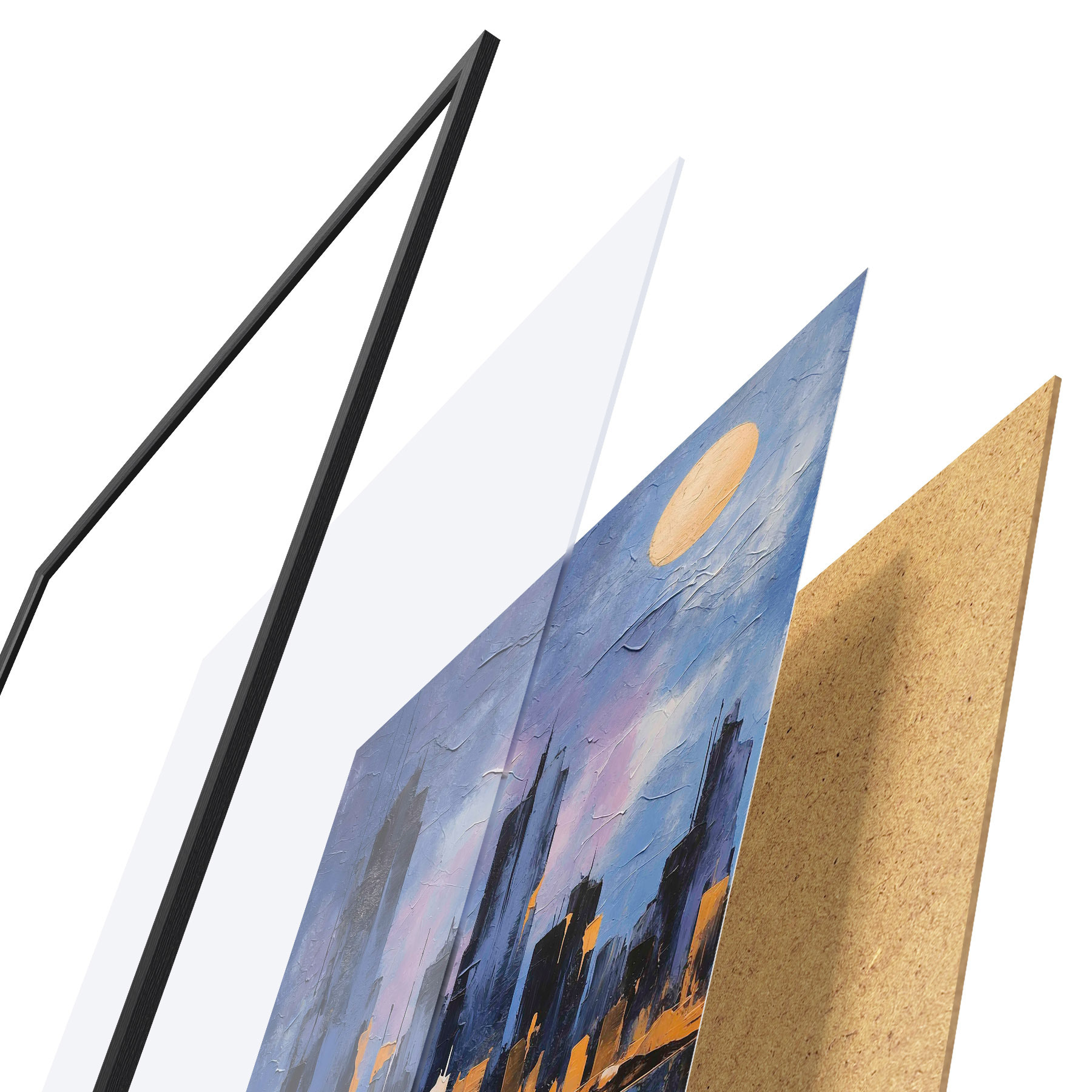 Plakatą sudaro rėmas, pleksiklas, atspausdintas vaizdas ir medžio drožlių plokštės pagrindas. Plakatą galima iš karto pakabinti ant sienos dėl kitoje pusėje esančių laikiklių.