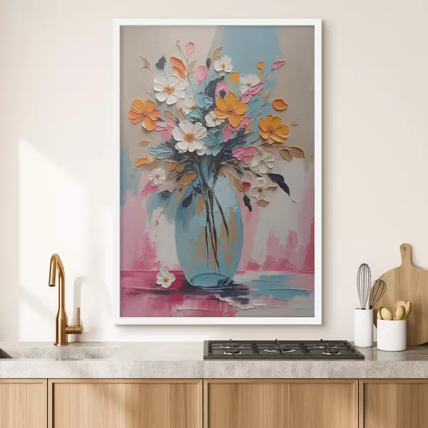Plakatas Gėlės vazoje rožiniame fone Ne f38585