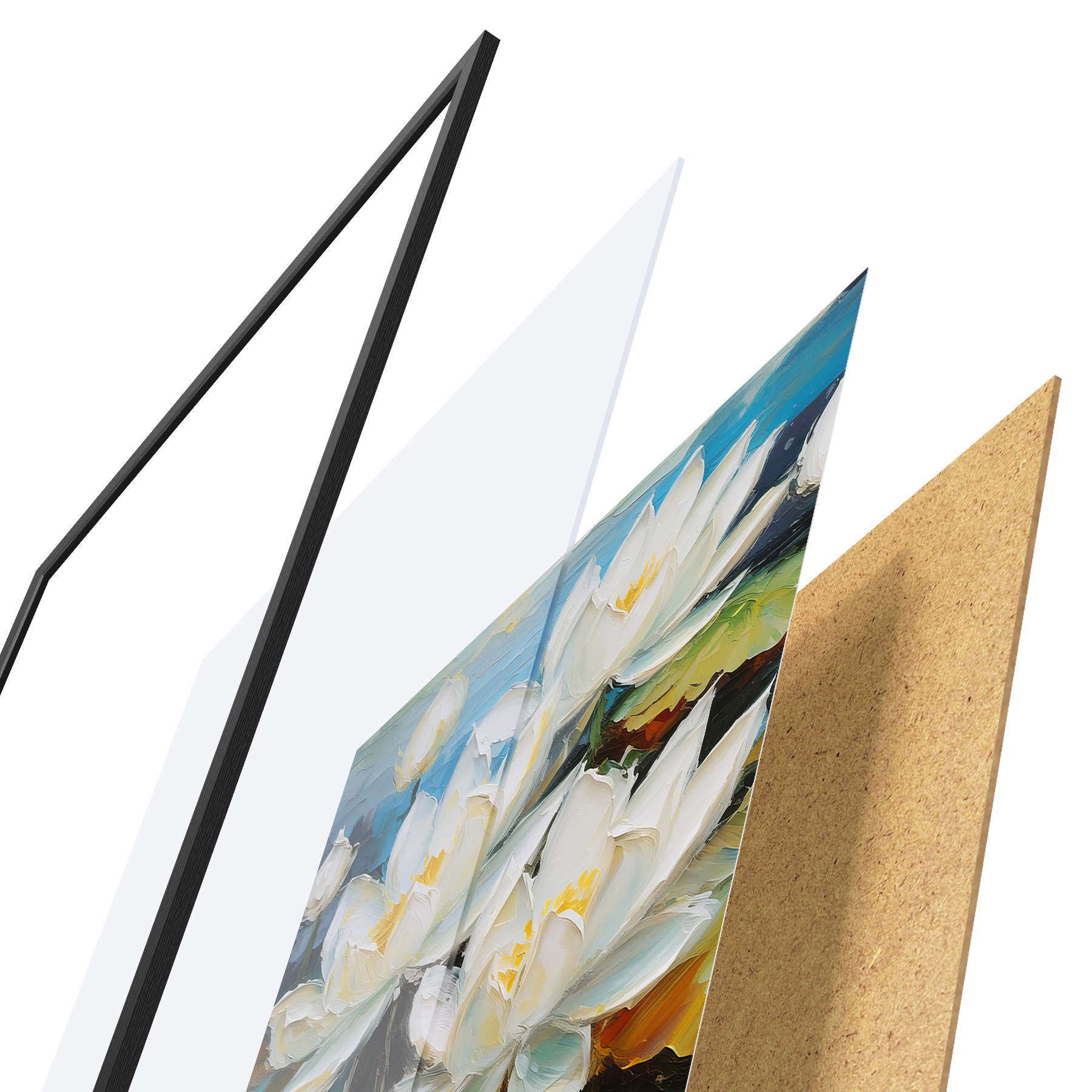 Plakatą sudaro rėmas, pleksiklas, atspausdintas vaizdas ir medžio drožlių plokštės pagrindas. Plakatą galima iš karto pakabinti ant sienos dėl kitoje pusėje esančių laikiklių.