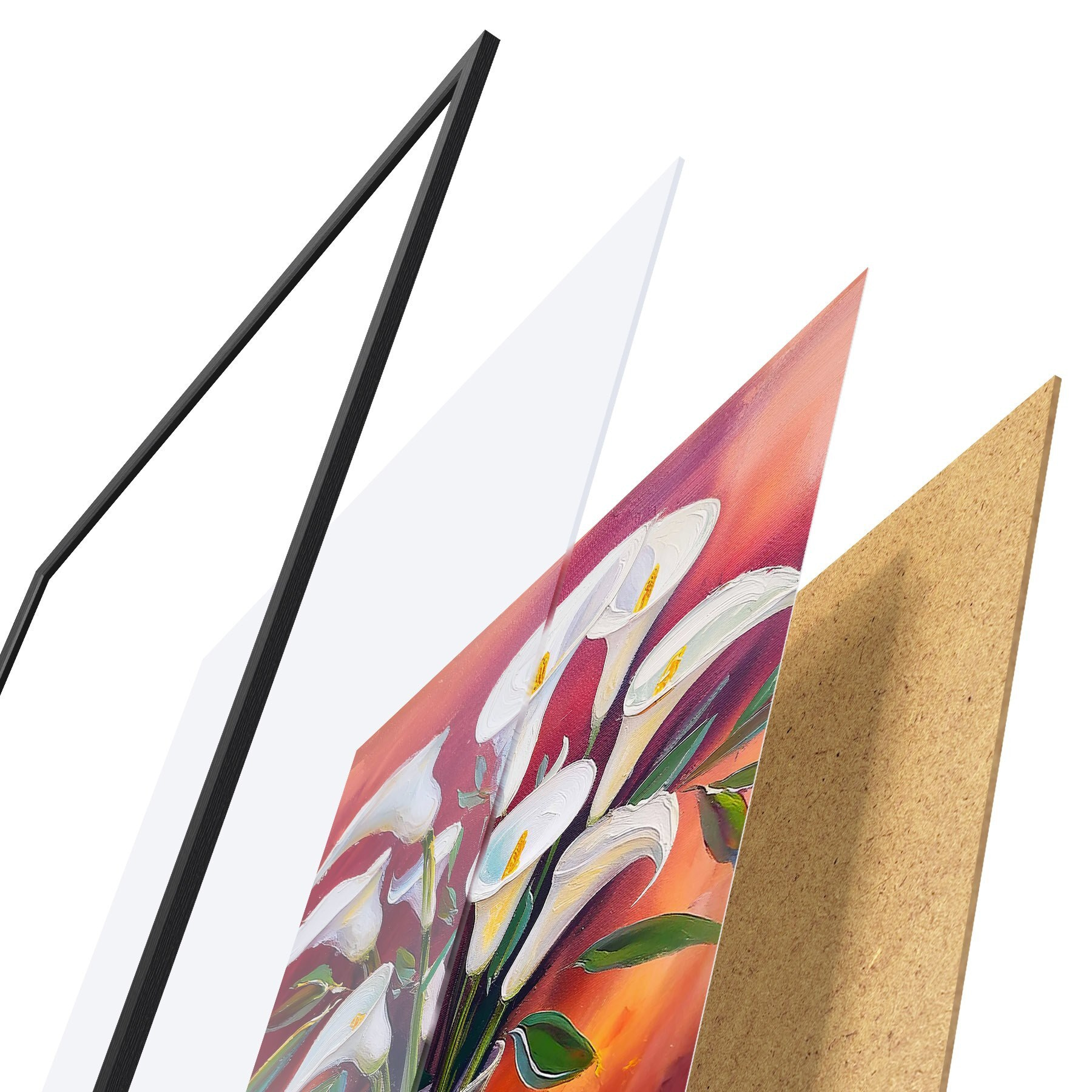 Plakatą sudaro rėmas, pleksiklas, atspausdintas vaizdas ir medžio drožlių plokštės pagrindas. Plakatą galima iš karto pakabinti ant sienos dėl kitoje pusėje esančių laikiklių.