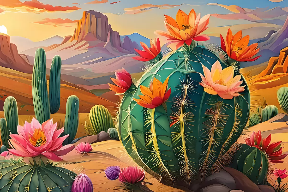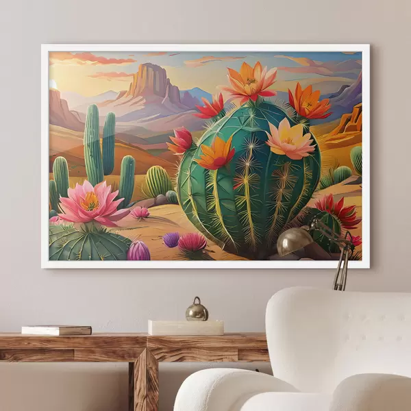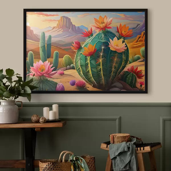 Plakatas dideli kaktusai su gėlėmis Ne f38607