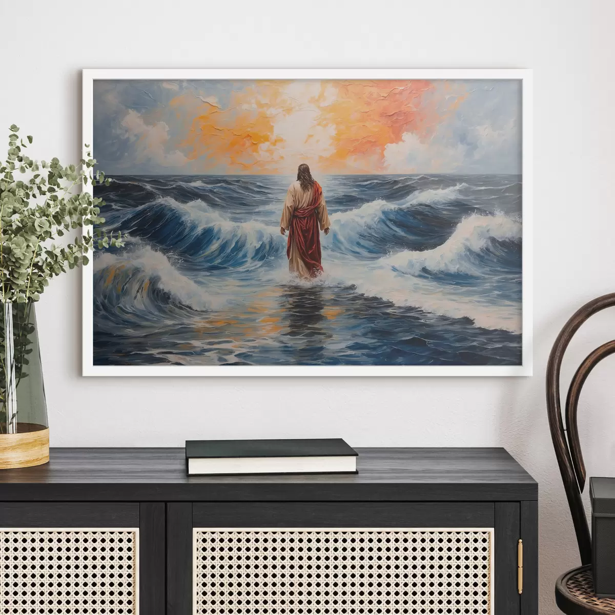 Plakatas Jėzus Kristus vaikščioja šėlstančia jūra f38613