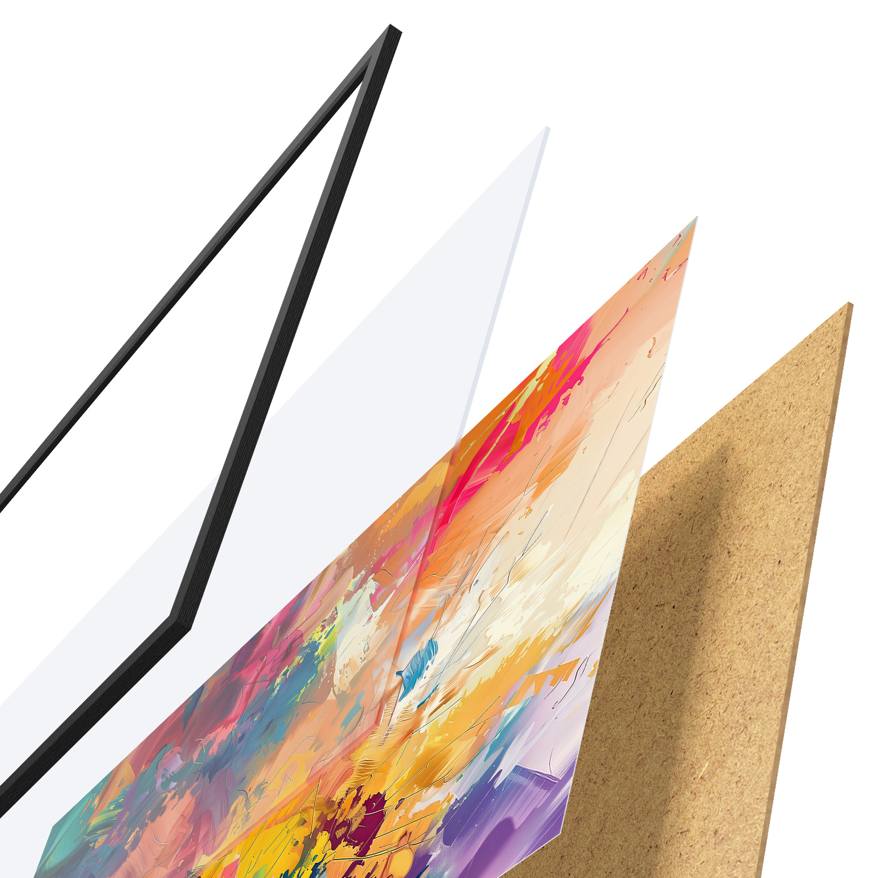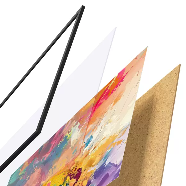 Plakatą sudaro rėmas, pleksiklas, atspausdintas vaizdas ir medžio drožlių plokštės pagrindas. Plakatą galima iš karto pakabinti ant sienos dėl kitoje pusėje esančių laikiklių.