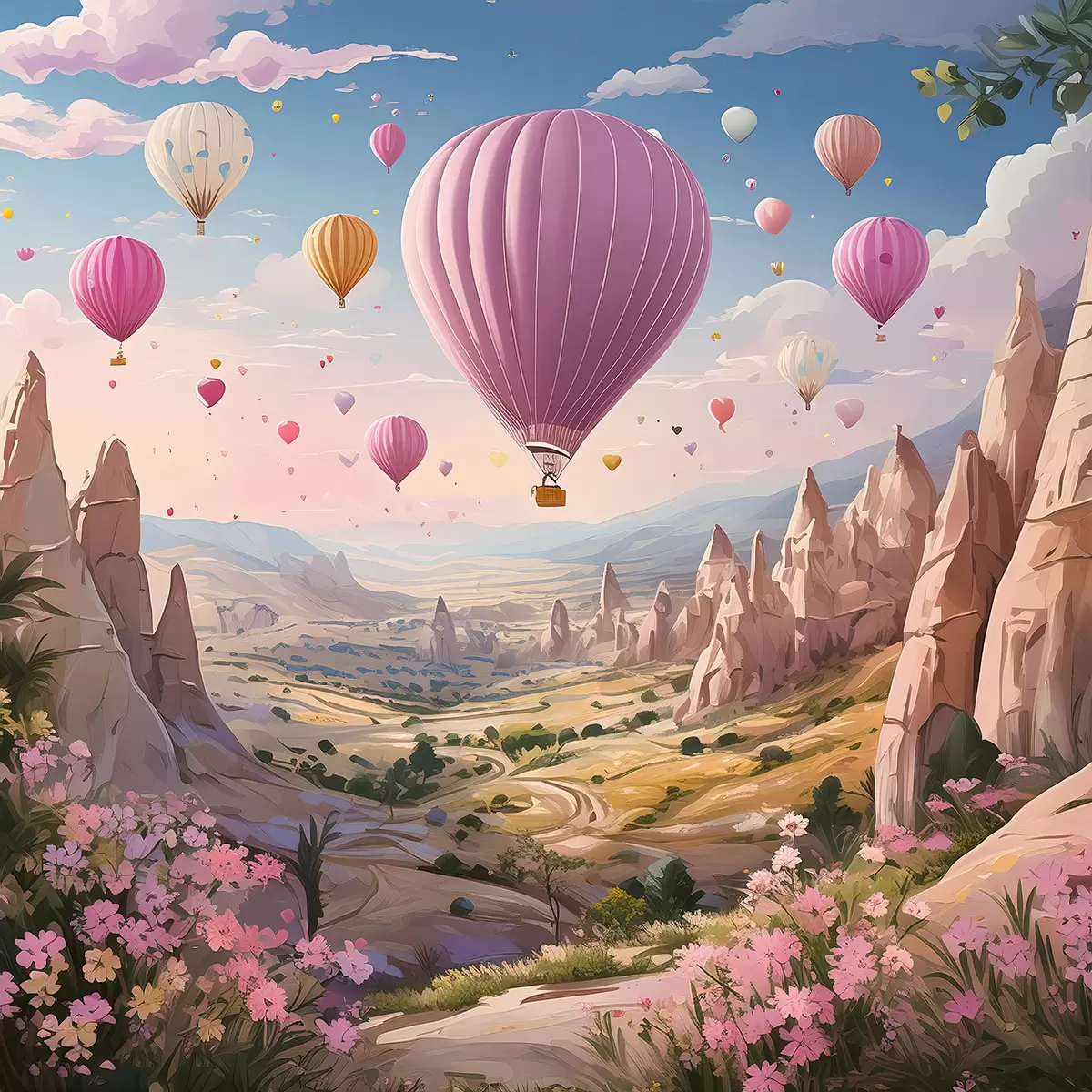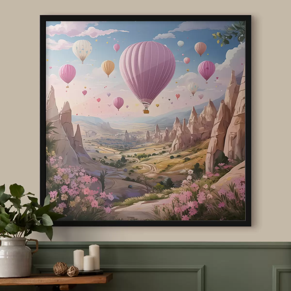 Plakatas balionai kalnuose virš gėlių Ne f38656