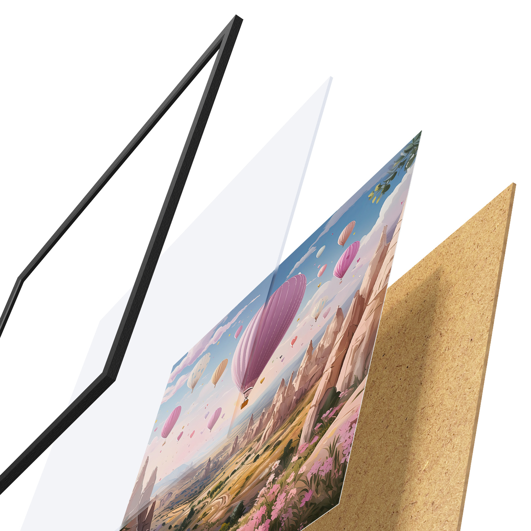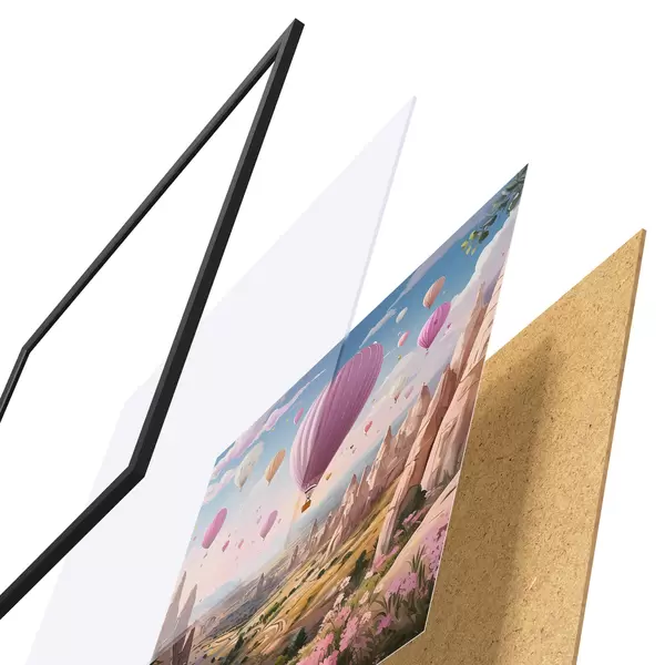 Plakatą sudaro rėmas, pleksiklas, atspausdintas vaizdas ir medžio drožlių plokštės pagrindas. Plakatą galima iš karto pakabinti ant sienos dėl kitoje pusėje esančių laikiklių.