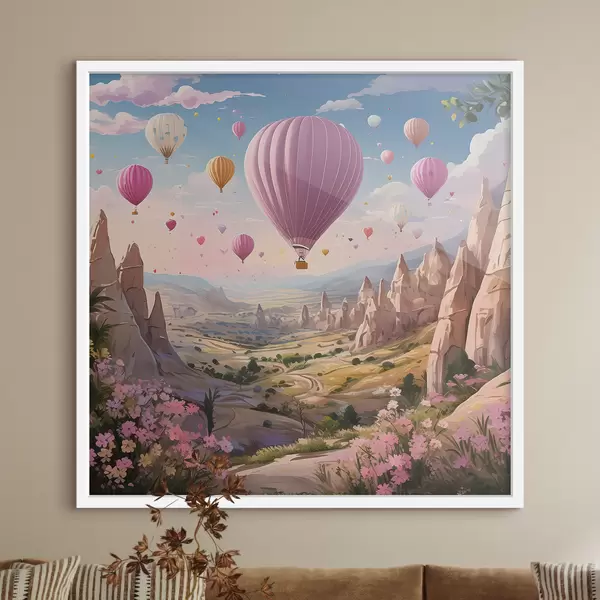 Plakatas balionai kalnuose virš gėlių Ne f38656