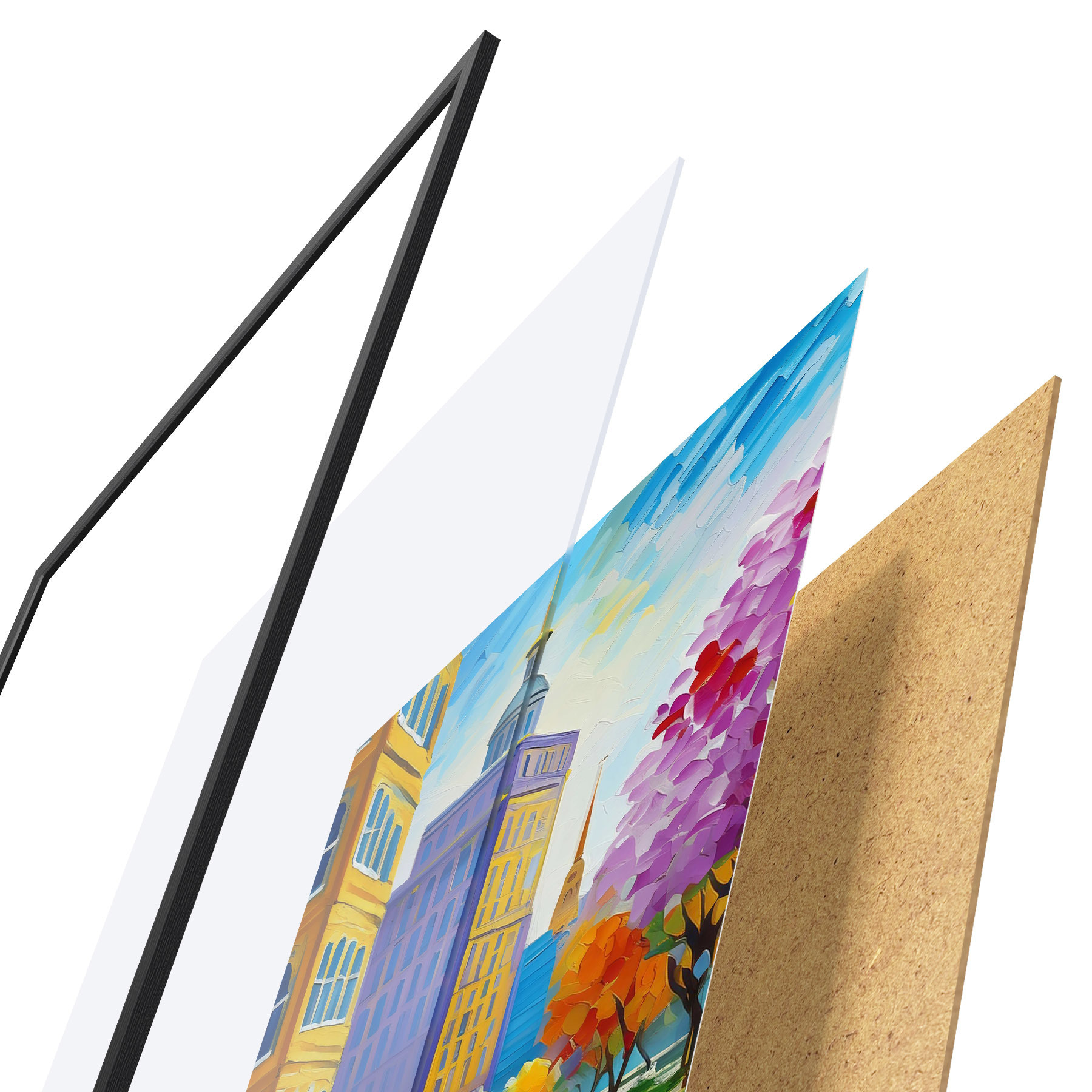 Plakatą sudaro rėmas, pleksiklas, atspausdintas vaizdas ir medžio drožlių plokštės pagrindas. Plakatą galima iš karto pakabinti ant sienos dėl kitoje pusėje esančių laikiklių.