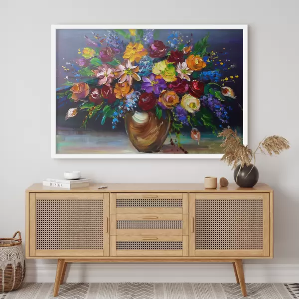 Plakatas sodri puokštė vazoje su aliejiniais dažais f38659