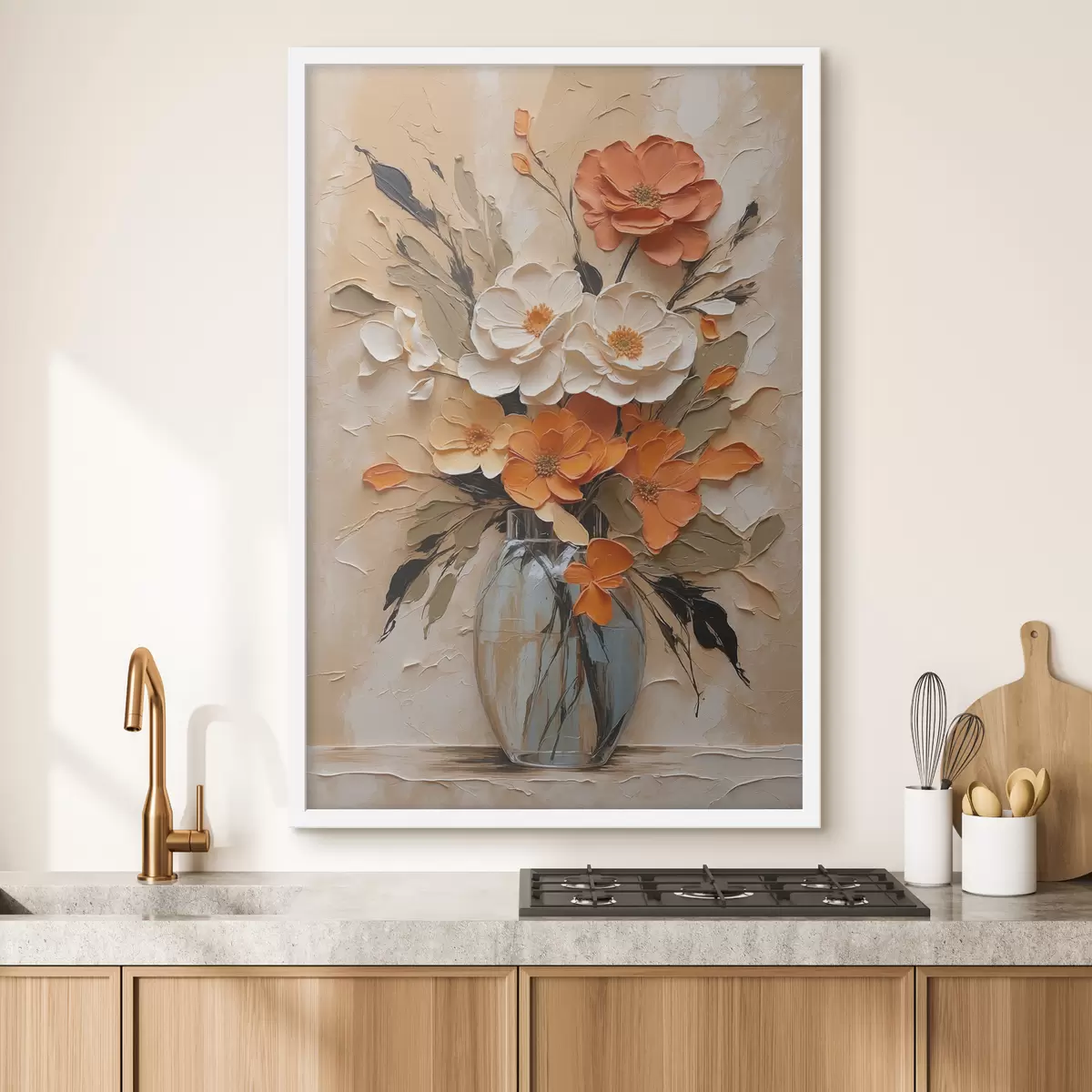 Plakatas Gėlės vazoje aliejuje smėlio spalvos fone f38673