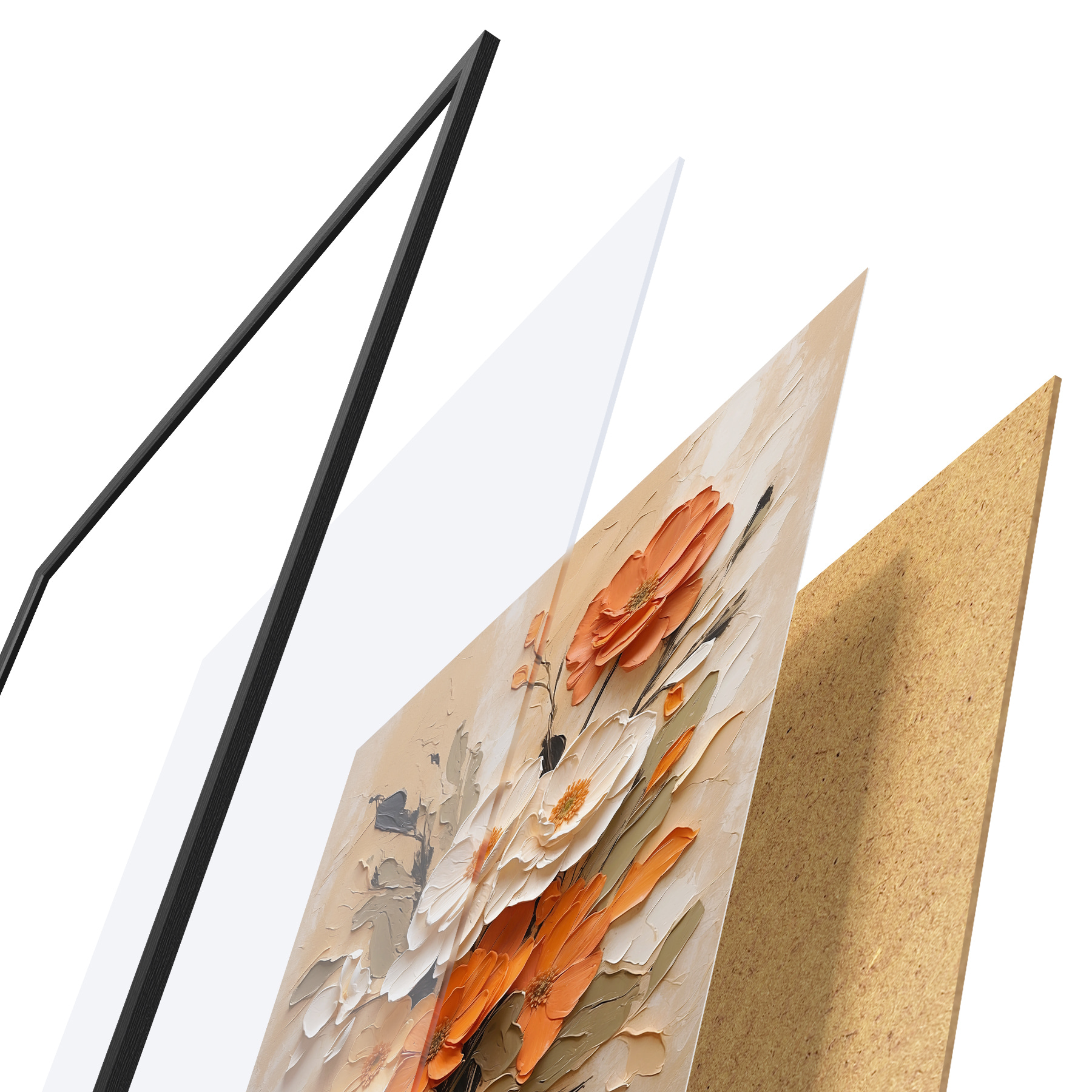 Plakatą sudaro rėmas, pleksiklas, atspausdintas vaizdas ir medžio drožlių plokštės pagrindas. Plakatą galima iš karto pakabinti ant sienos dėl kitoje pusėje esančių laikiklių.