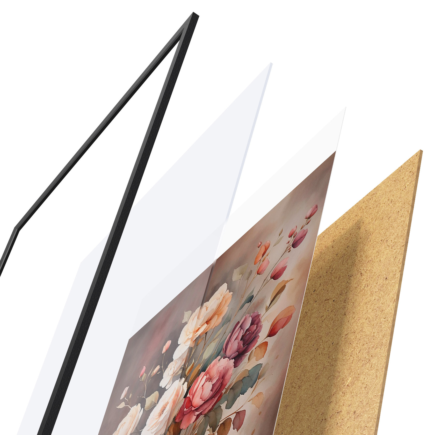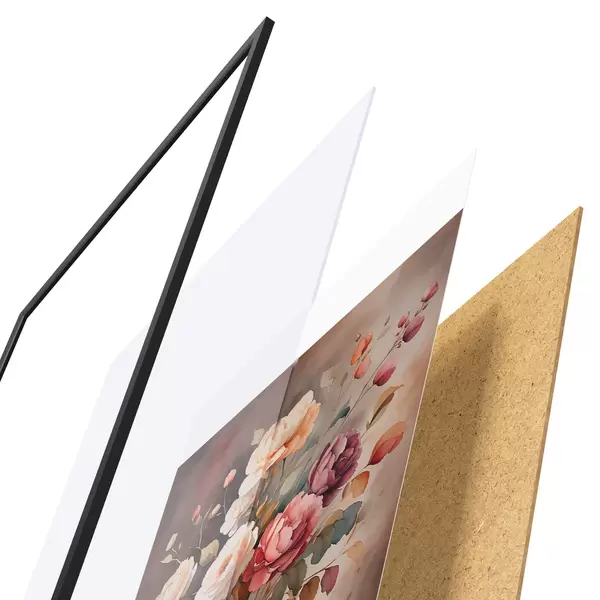 Plakatą sudaro rėmas, pleksiklas, atspausdintas vaizdas ir medžio drožlių plokštės pagrindas. Plakatą galima iš karto pakabinti ant sienos dėl kitoje pusėje esančių laikiklių.