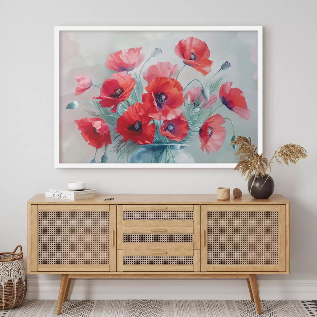 Plakatas Akvarelinės aguonos vazoje ant stalo f38695