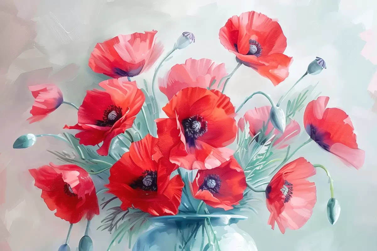 Plakatas Akvarelinės aguonos vazoje ant stalo Ne f38695