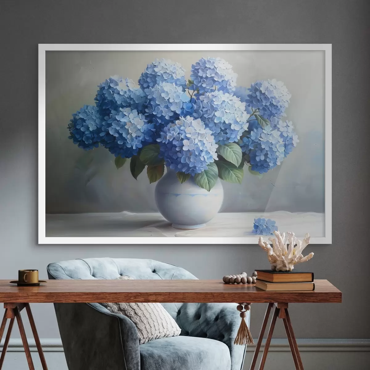 Plakatas Gražios mėlynos hortenzijos vazoje f38696