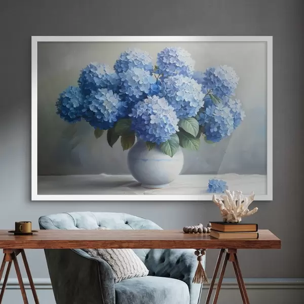Plakatas Gražios mėlynos hortenzijos vazoje Ne f38696