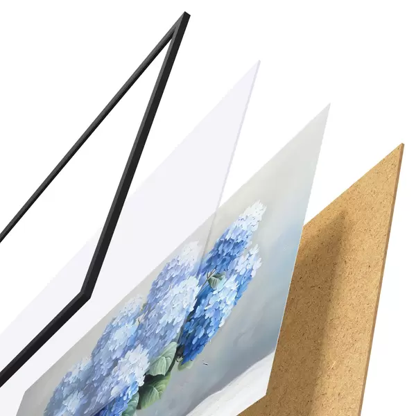Plakatą sudaro rėmas, pleksiklas, atspausdintas vaizdas ir medžio drožlių plokštės pagrindas. Plakatą galima iš karto pakabinti ant sienos dėl kitoje pusėje esančių laikiklių.