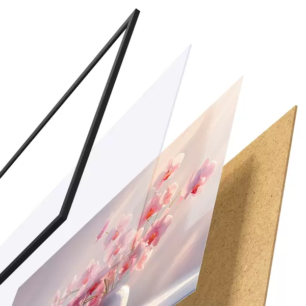 Plakatą sudaro rėmas, pleksiklas, atspausdintas vaizdas ir medžio drožlių plokštės pagrindas. Plakatą galima iš karto pakabinti ant sienos dėl kitoje pusėje esančių laikiklių.