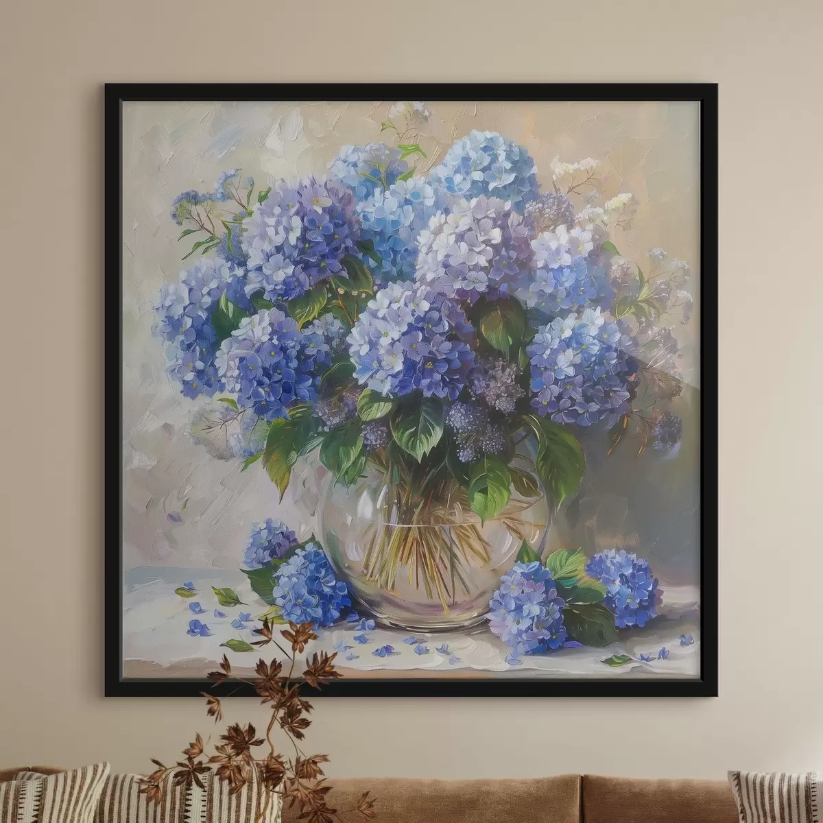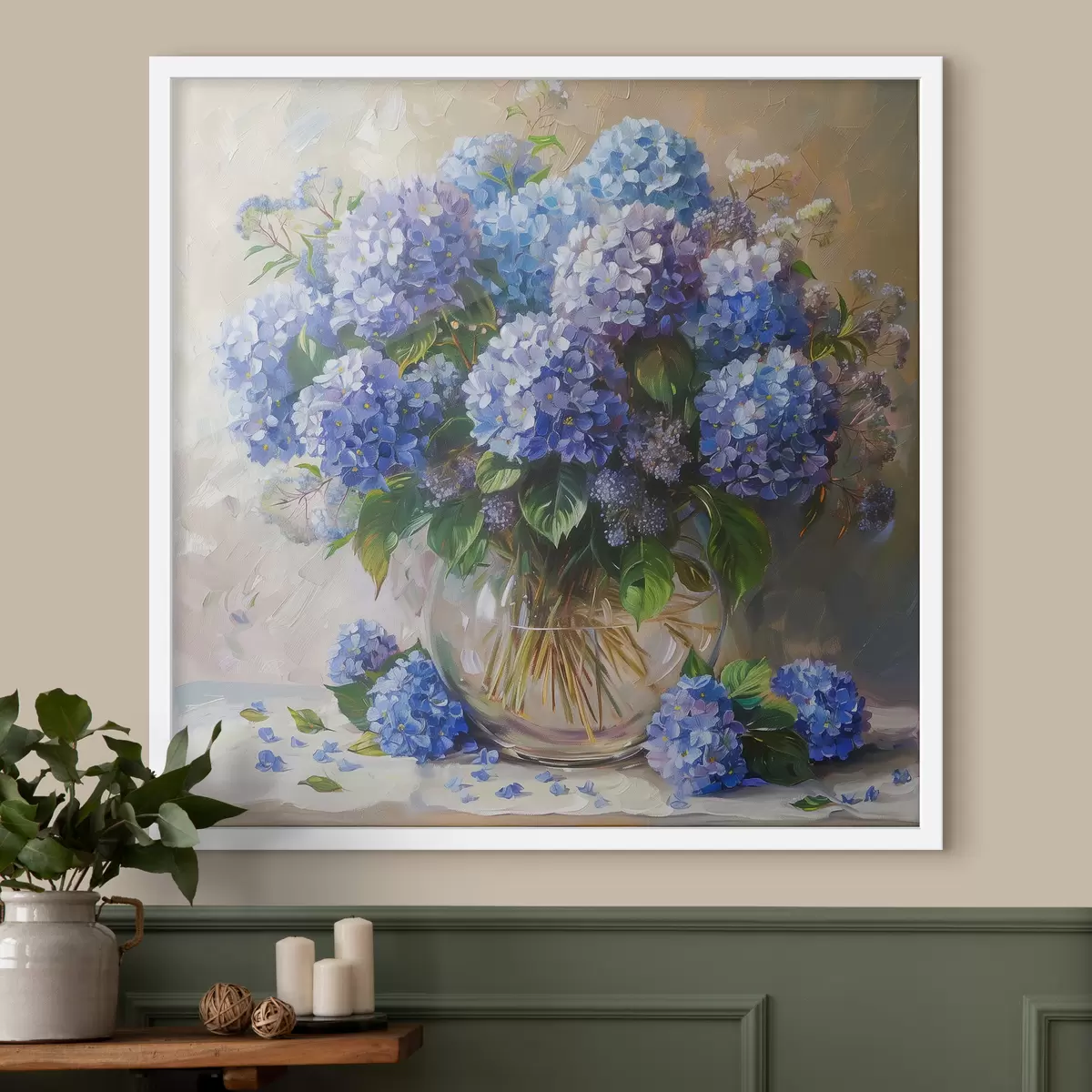 Plakatas Mėlynos hortenzijos ant stalo Ne f38709