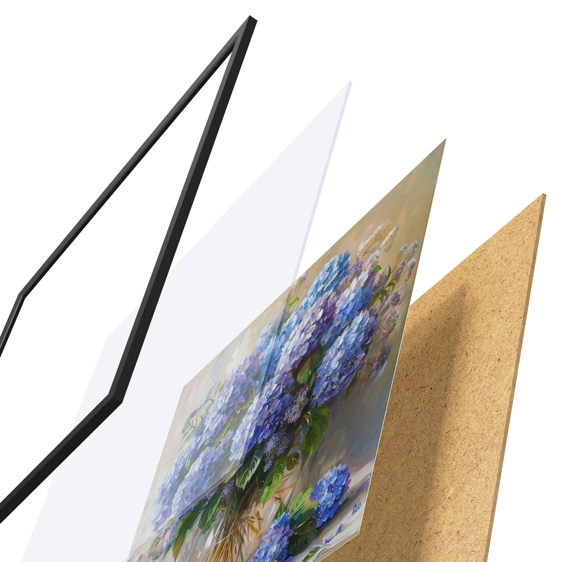 Plakatą sudaro rėmas, pleksiklas, atspausdintas vaizdas ir medžio drožlių plokštės pagrindas. Plakatą galima iš karto pakabinti ant sienos dėl kitoje pusėje esančių laikiklių.