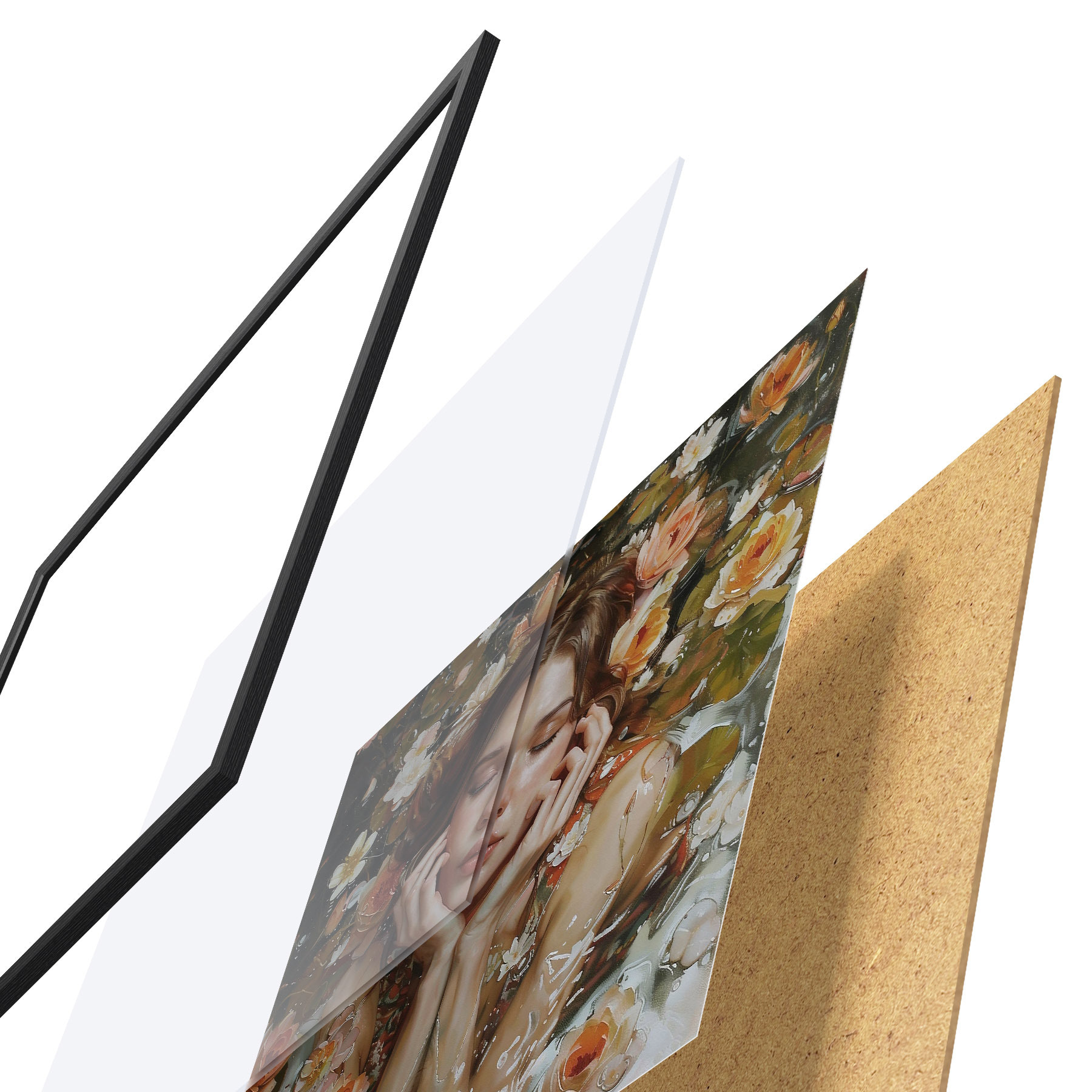 Plakatą sudaro rėmas, pleksiklas, atspausdintas vaizdas ir medžio drožlių plokštės pagrindas. Plakatą galima iš karto pakabinti ant sienos dėl kitoje pusėje esančių laikiklių.