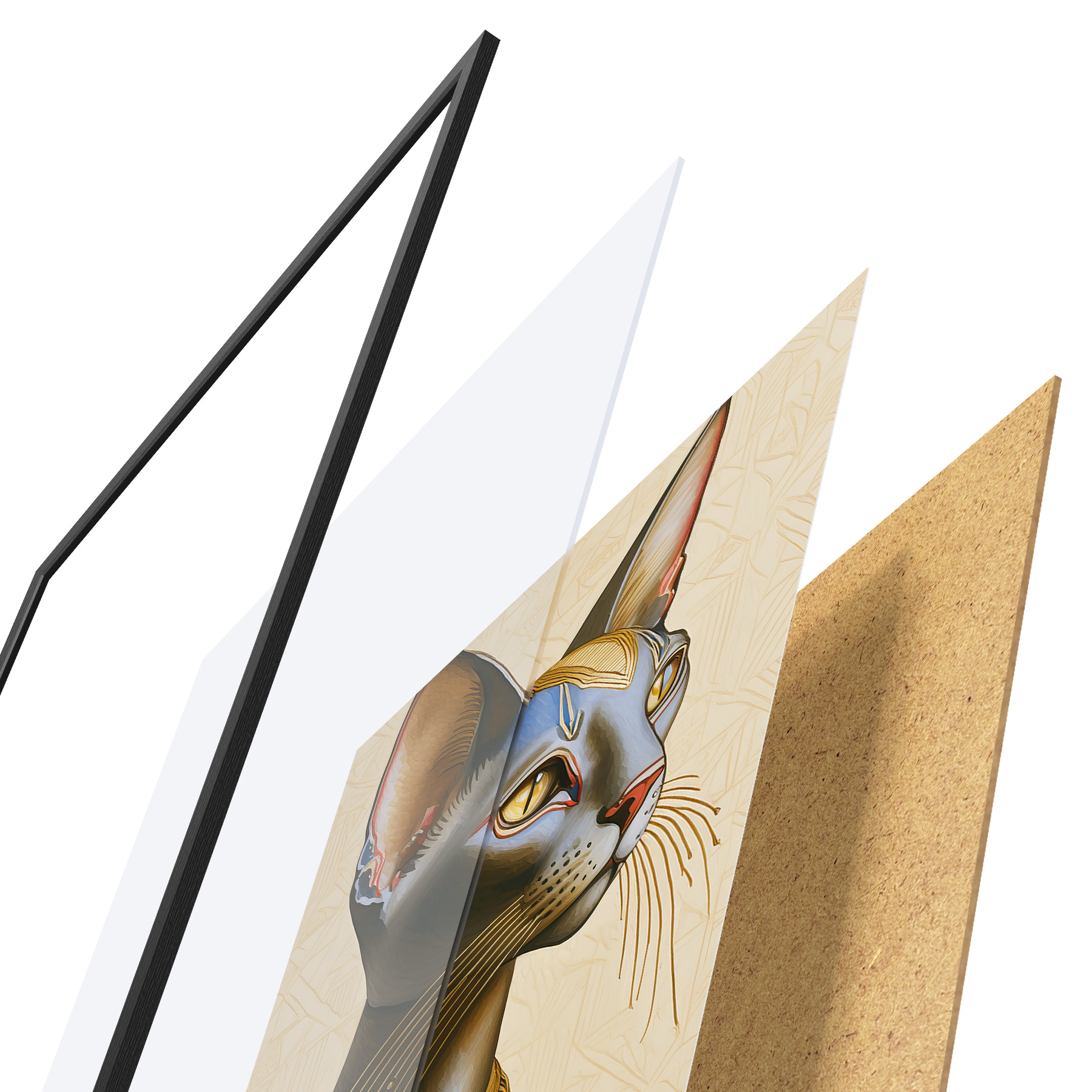 Plakatą sudaro rėmas, pleksiklas, atspausdintas vaizdas ir medžio drožlių plokštės pagrindas. Plakatą galima iš karto pakabinti ant sienos dėl kitoje pusėje esančių laikiklių.