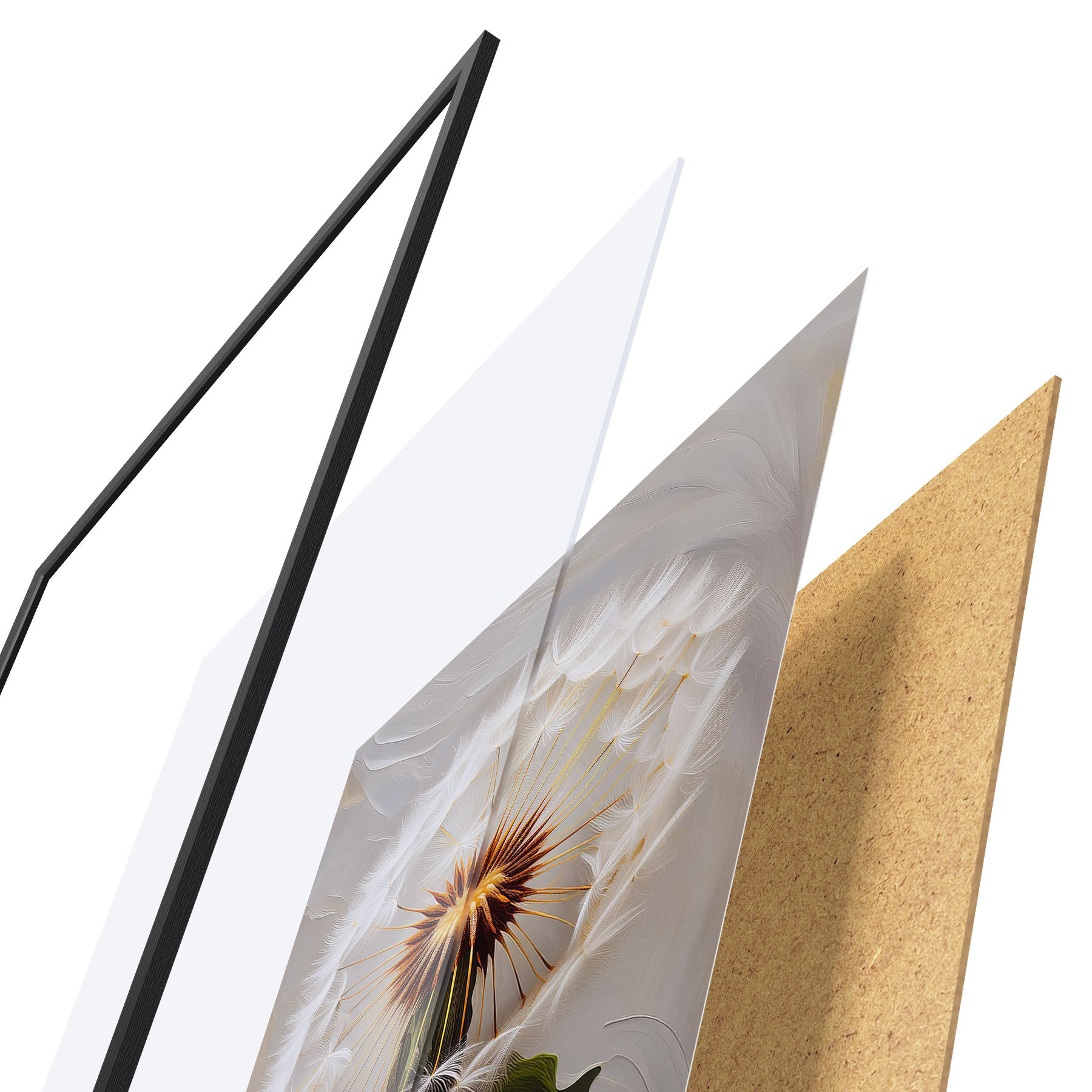 Plakatą sudaro rėmas, pleksiklas, atspausdintas vaizdas ir medžio drožlių plokštės pagrindas. Plakatą galima iš karto pakabinti ant sienos dėl kitoje pusėje esančių laikiklių.