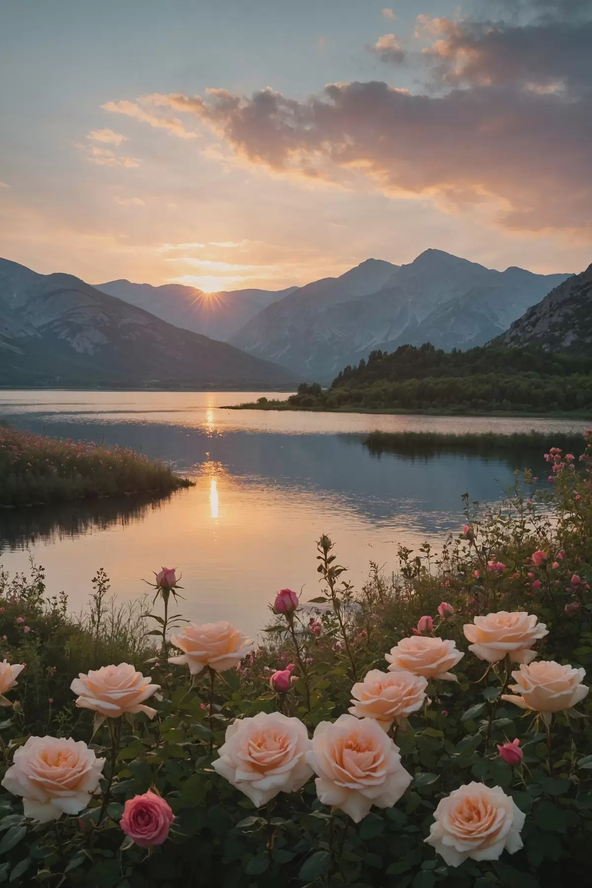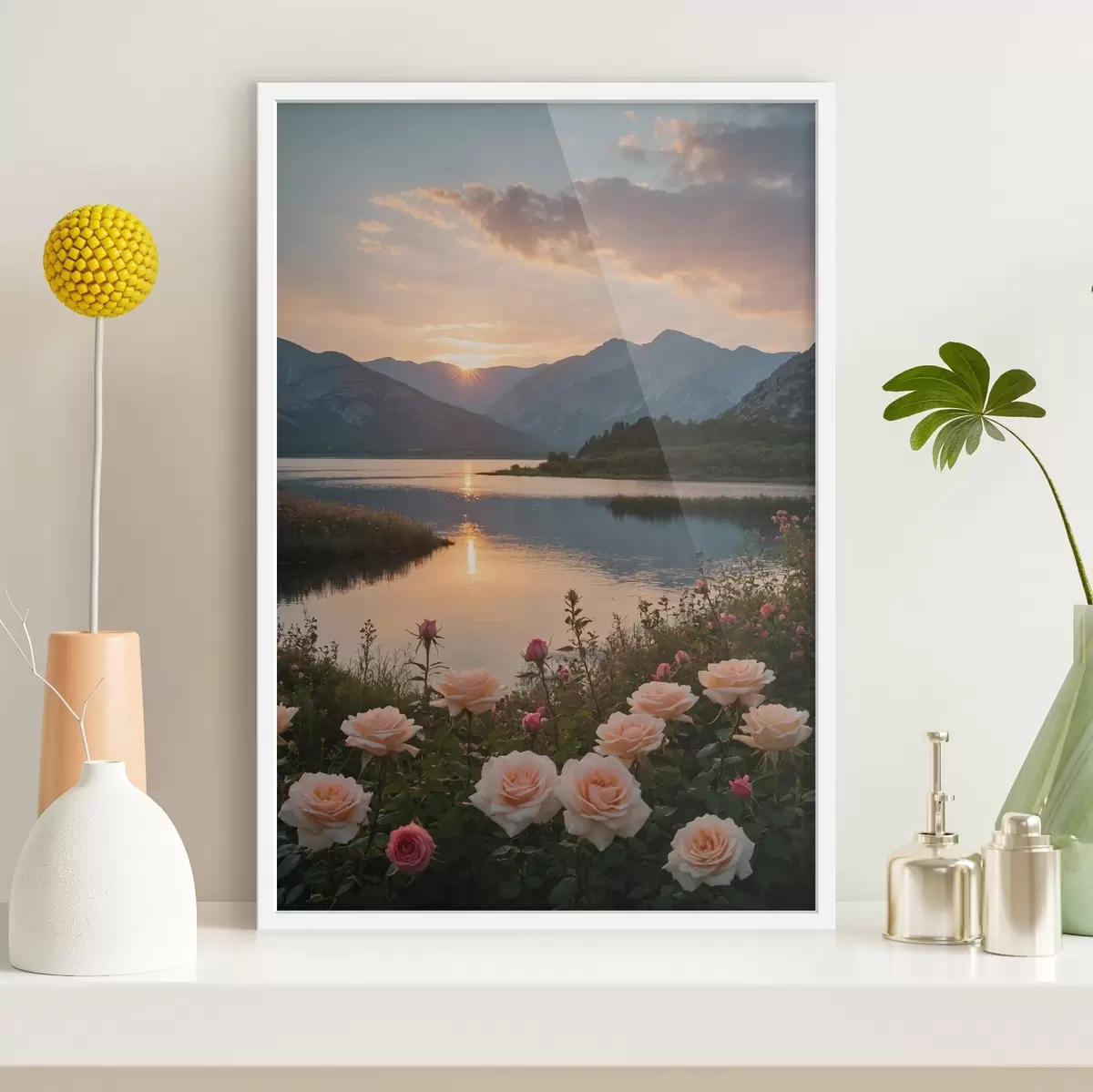 Plakatas Saulėlydžio atspindžiai prie ramaus ežero Ne f38735