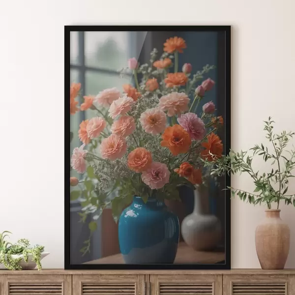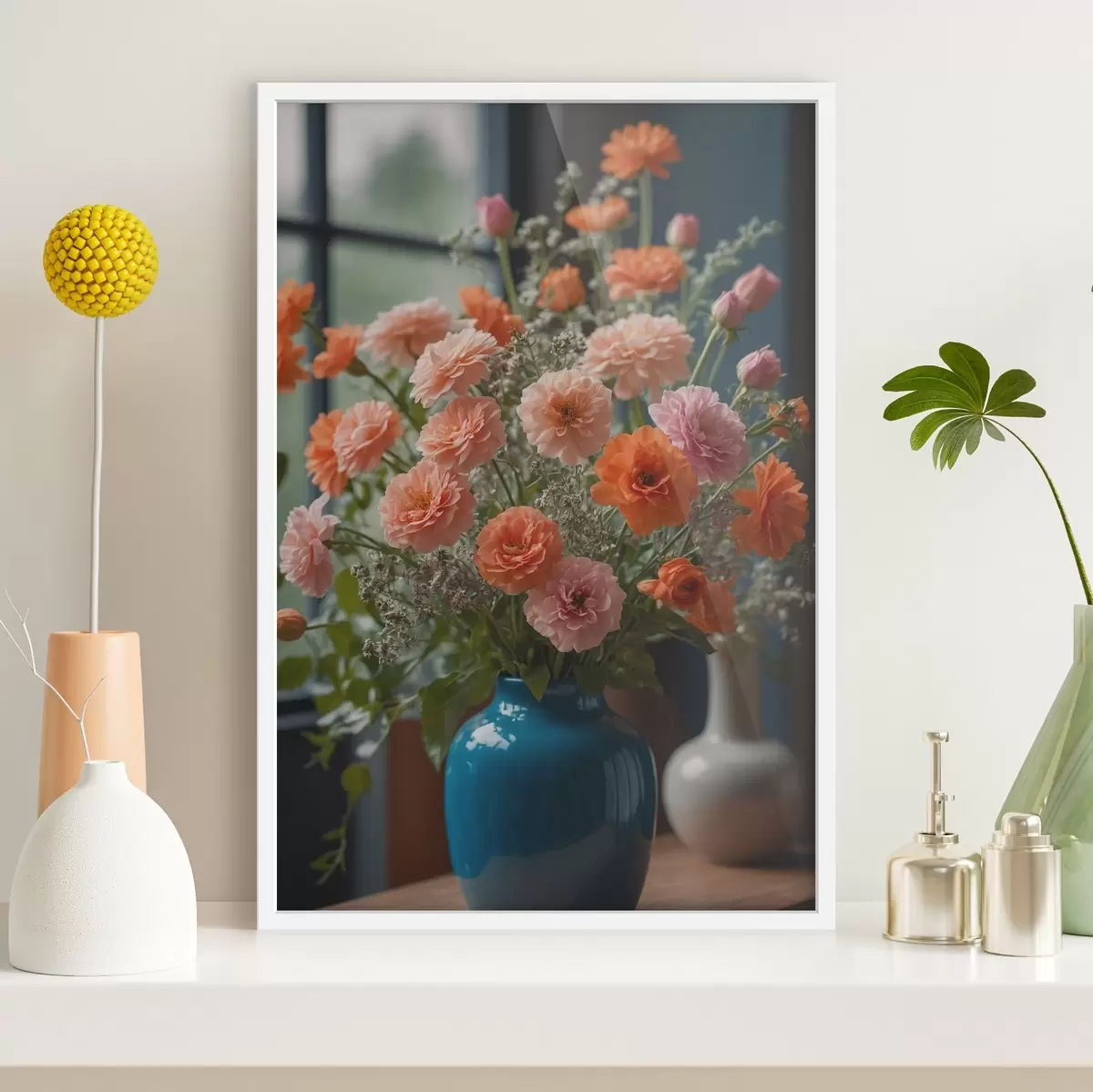 Plakatas Ryškūs žiedai mėlynoje vazoje Ne f38737