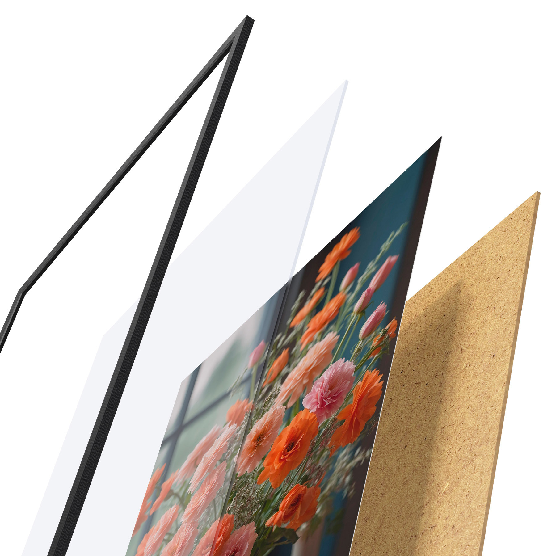Plakatą sudaro rėmas, pleksiklas, atspausdintas vaizdas ir medžio drožlių plokštės pagrindas. Plakatą galima iš karto pakabinti ant sienos dėl kitoje pusėje esančių laikiklių.