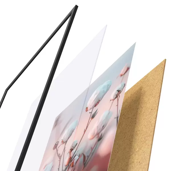 Plakatą sudaro rėmas, pleksiklas, atspausdintas vaizdas ir medžio drožlių plokštės pagrindas. Plakatą galima iš karto pakabinti ant sienos dėl kitoje pusėje esančių laikiklių.