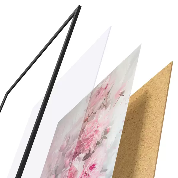 Plakatą sudaro rėmas, pleksiklas, atspausdintas vaizdas ir medžio drožlių plokštės pagrindas. Plakatą galima iš karto pakabinti ant sienos dėl kitoje pusėje esančių laikiklių.