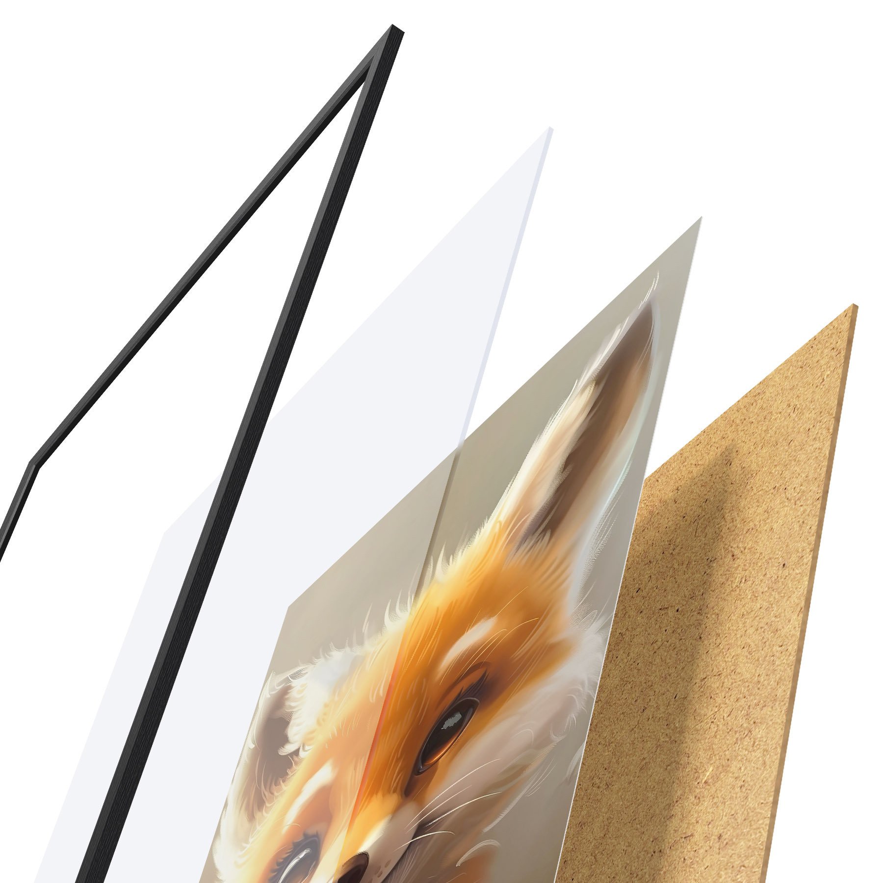 Plakatą sudaro rėmas, pleksiklas, atspausdintas vaizdas ir medžio drožlių plokštės pagrindas. Plakatą galima iš karto pakabinti ant sienos dėl kitoje pusėje esančių laikiklių.