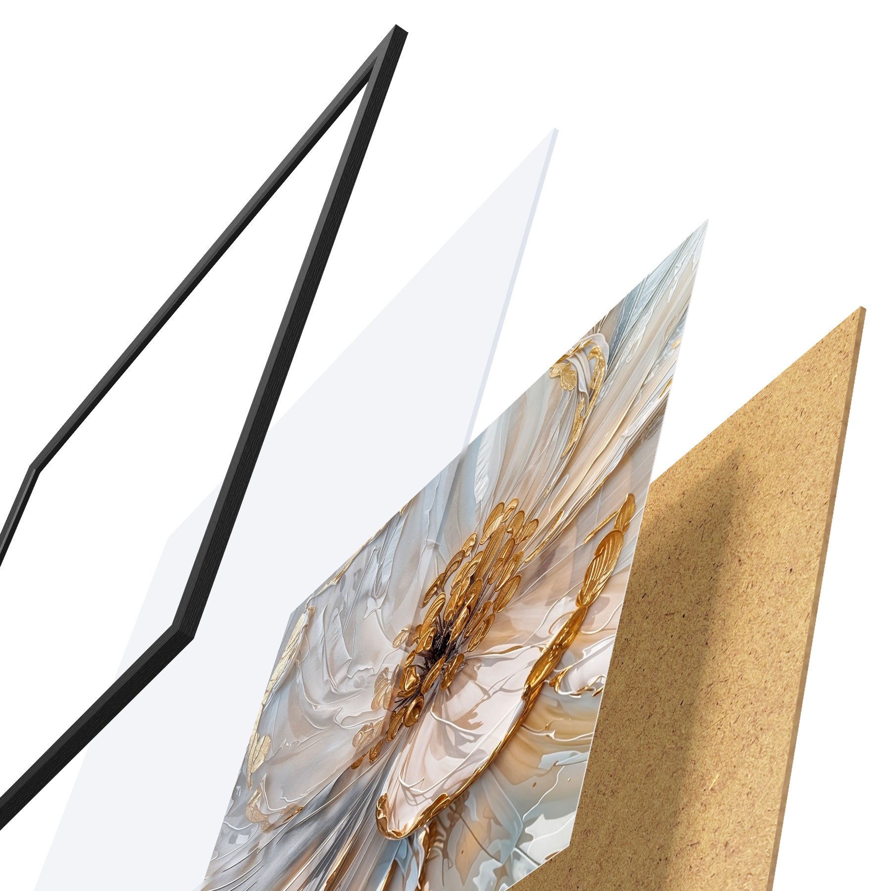 Plakatą sudaro rėmas, pleksiklas, atspausdintas vaizdas ir medžio drožlių plokštės pagrindas. Plakatą galima iš karto pakabinti ant sienos dėl kitoje pusėje esančių laikiklių.