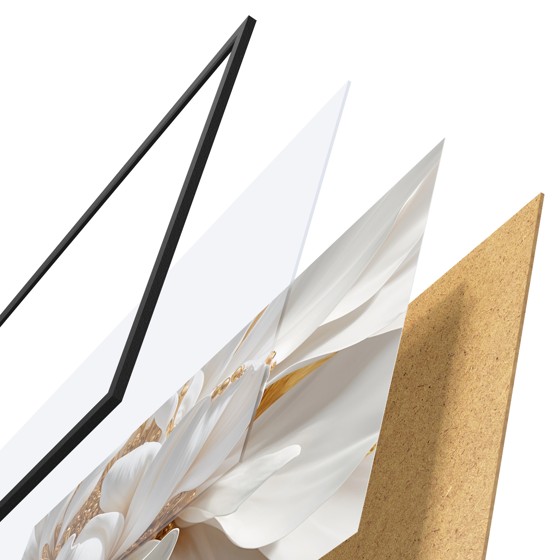 Plakatą sudaro rėmas, pleksiklas, atspausdintas vaizdas ir medžio drožlių plokštės pagrindas. Plakatą galima iš karto pakabinti ant sienos dėl kitoje pusėje esančių laikiklių.