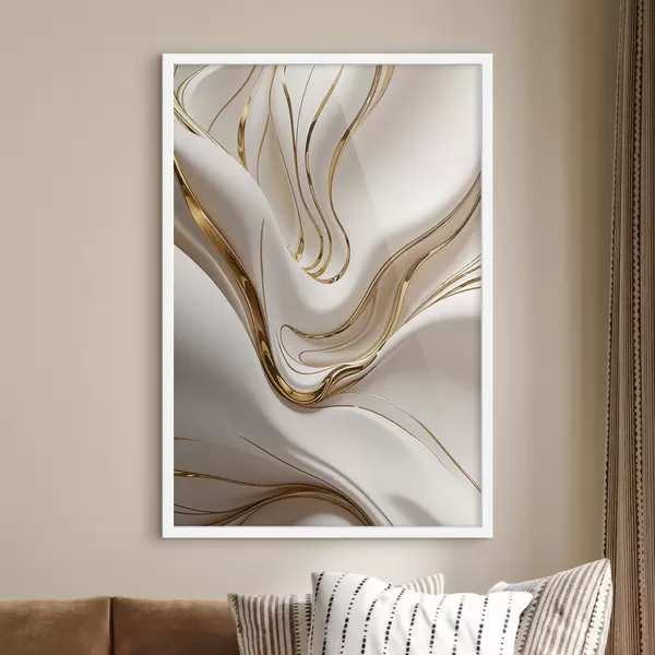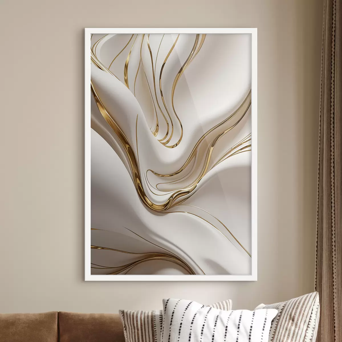 Plakatas Tekančios ir baltos abstrakčios formos, primenančios skystą ar išlydytą metalą, dinamiška kompozicija f38767