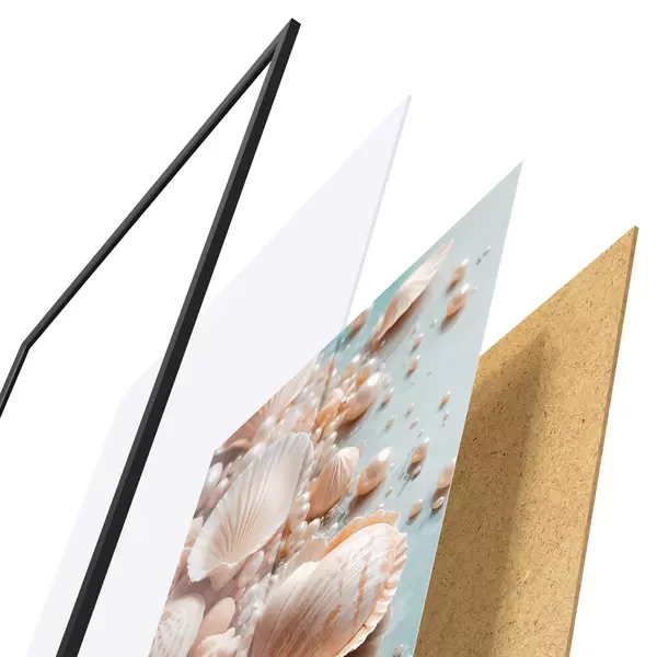 Plakatą sudaro rėmas, pleksiklas, atspausdintas vaizdas ir medžio drožlių plokštės pagrindas. Plakatą galima iš karto pakabinti ant sienos dėl kitoje pusėje esančių laikiklių.