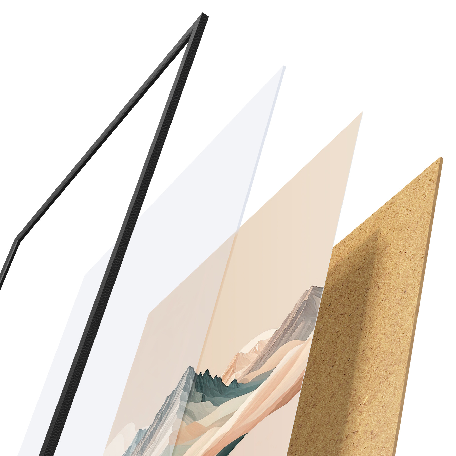 Plakatą sudaro rėmas, pleksiklas, atspausdintas vaizdas ir medžio drožlių plokštės pagrindas. Plakatą galima iš karto pakabinti ant sienos dėl kitoje pusėje esančių laikiklių.