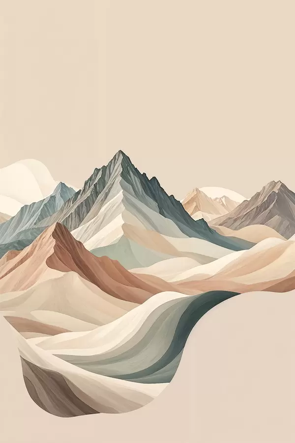 Plakatas Minimalizmo kalnų peizažas su uolėtomis viršūnėmis ir smėlio spalvos kalvomis f38770