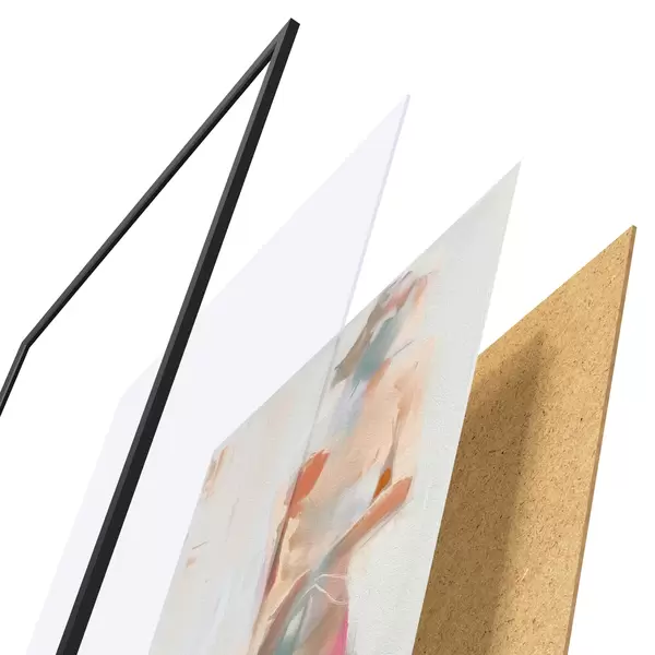 Plakatą sudaro rėmas, pleksiklas, atspausdintas vaizdas ir medžio drožlių plokštės pagrindas. Plakatą galima iš karto pakabinti ant sienos dėl kitoje pusėje esančių laikiklių.