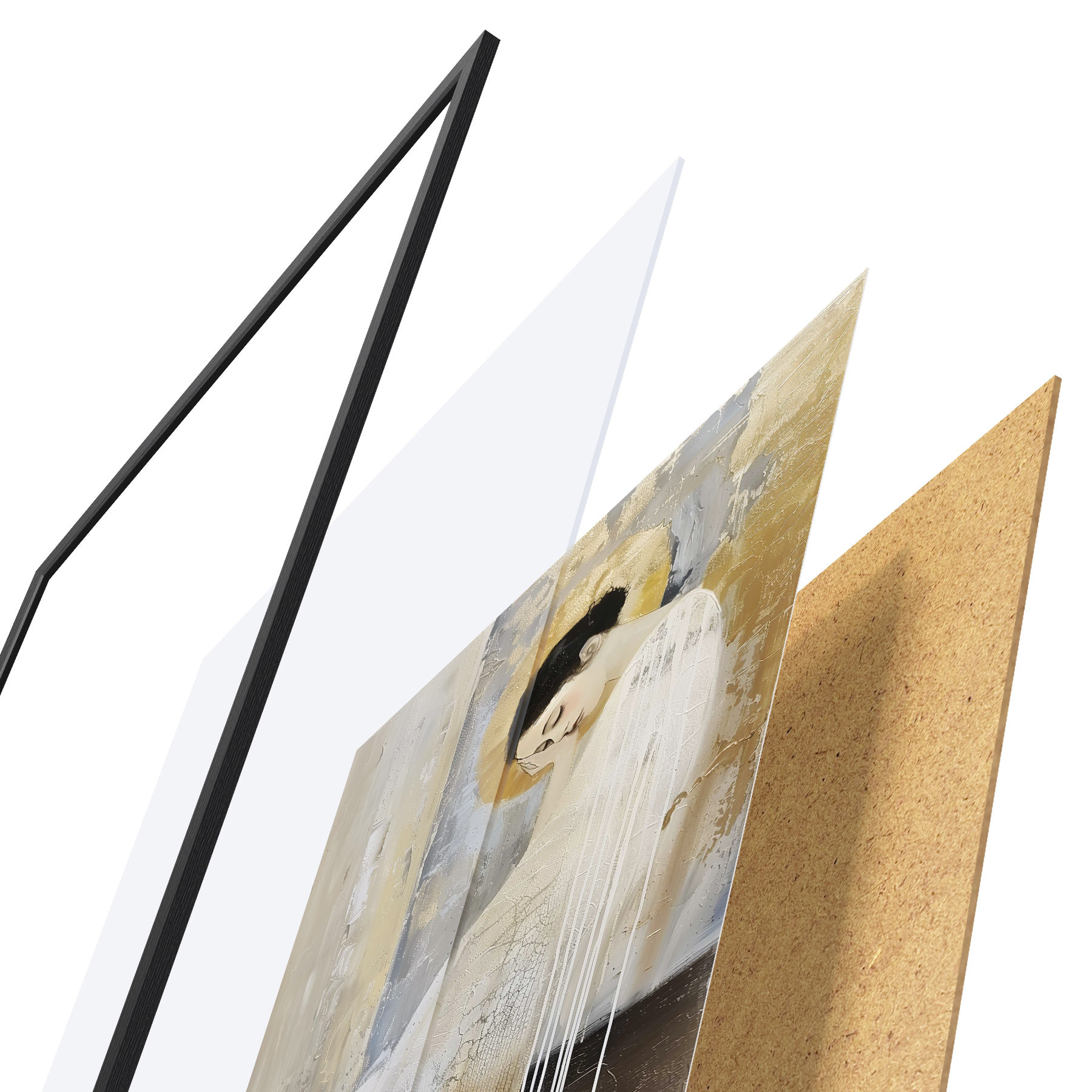 Plakatą sudaro rėmas, pleksiklas, atspausdintas vaizdas ir medžio drožlių plokštės pagrindas. Plakatą galima iš karto pakabinti ant sienos dėl kitoje pusėje esančių laikiklių.