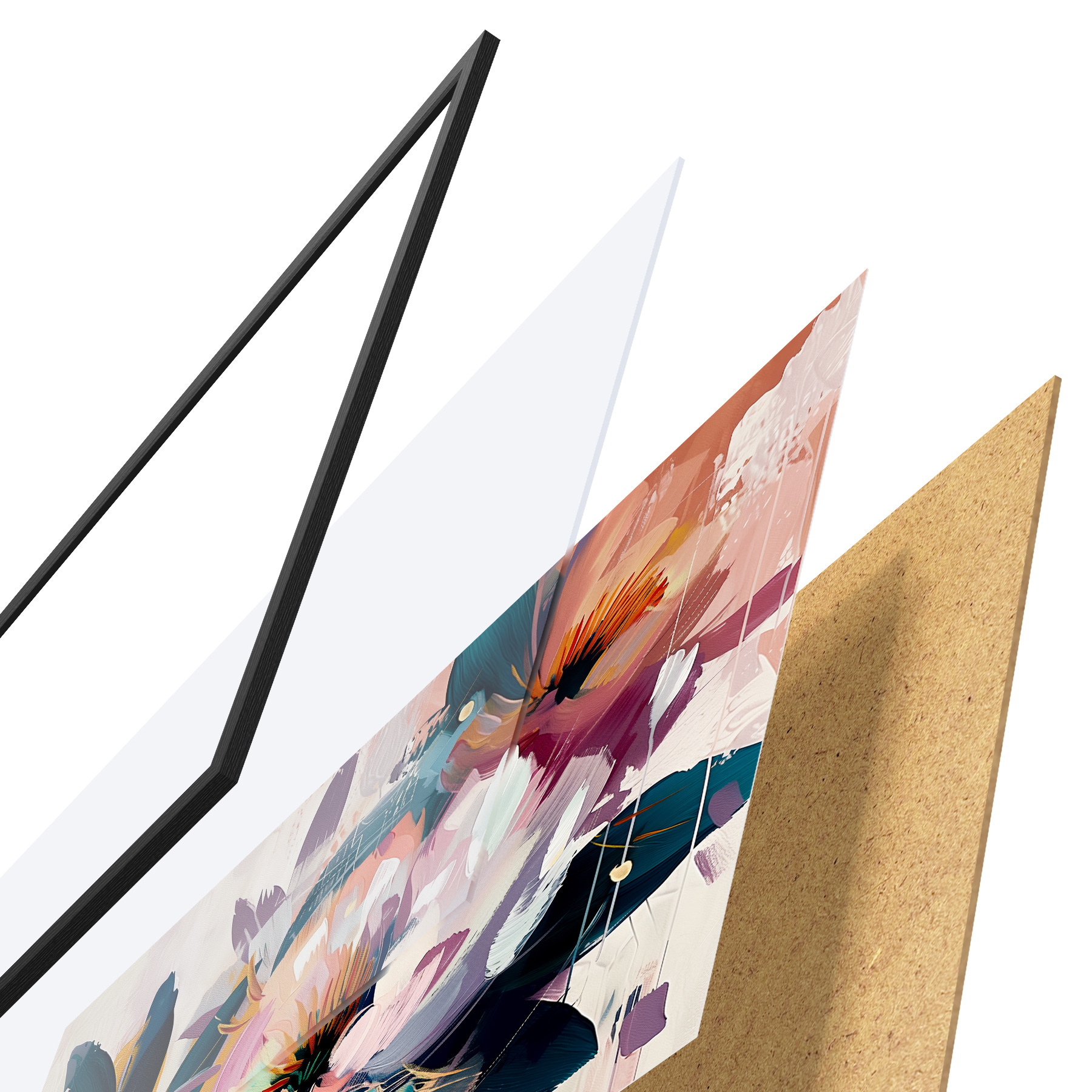 Plakatą sudaro rėmas, pleksiklas, atspausdintas vaizdas ir medžio drožlių plokštės pagrindas. Plakatą galima iš karto pakabinti ant sienos dėl kitoje pusėje esančių laikiklių.