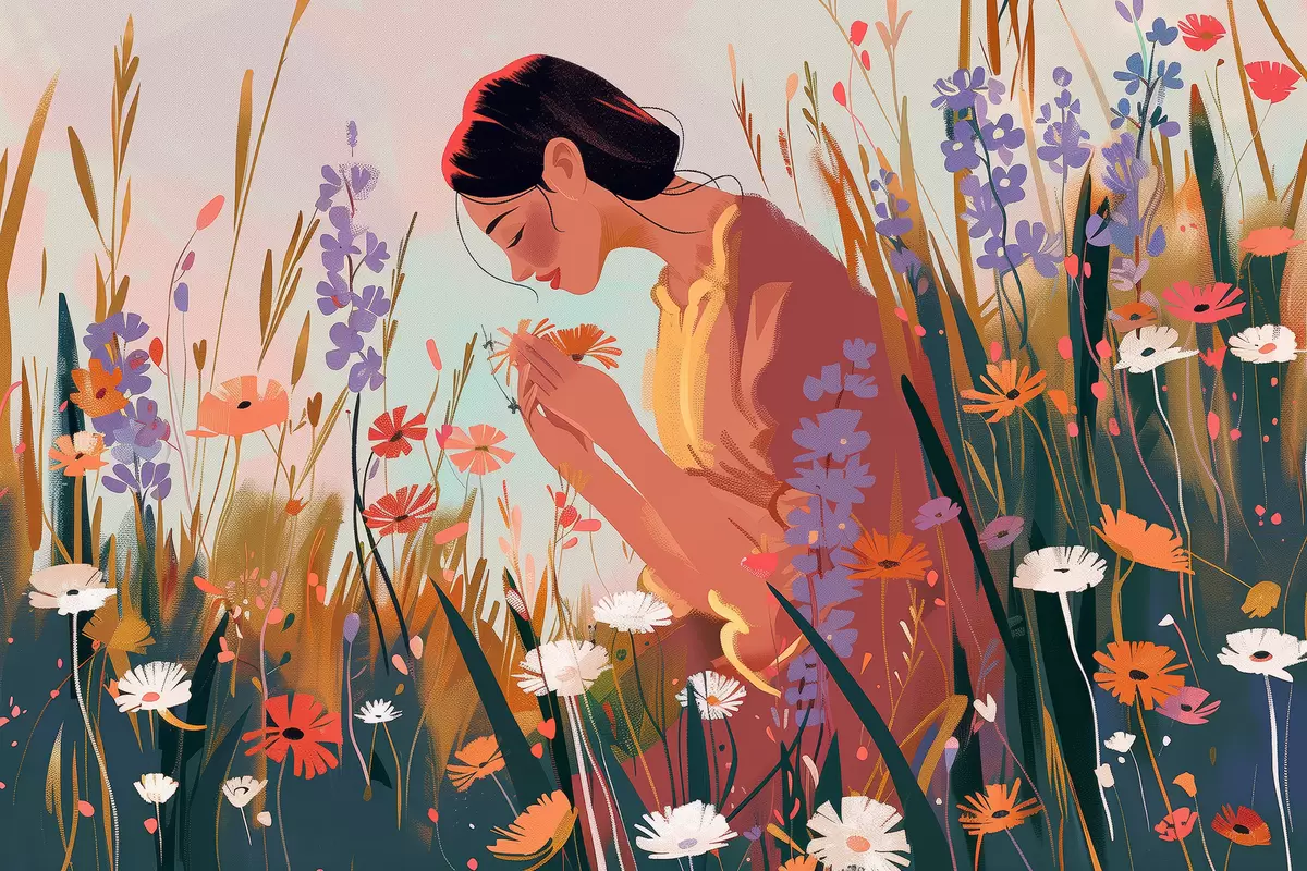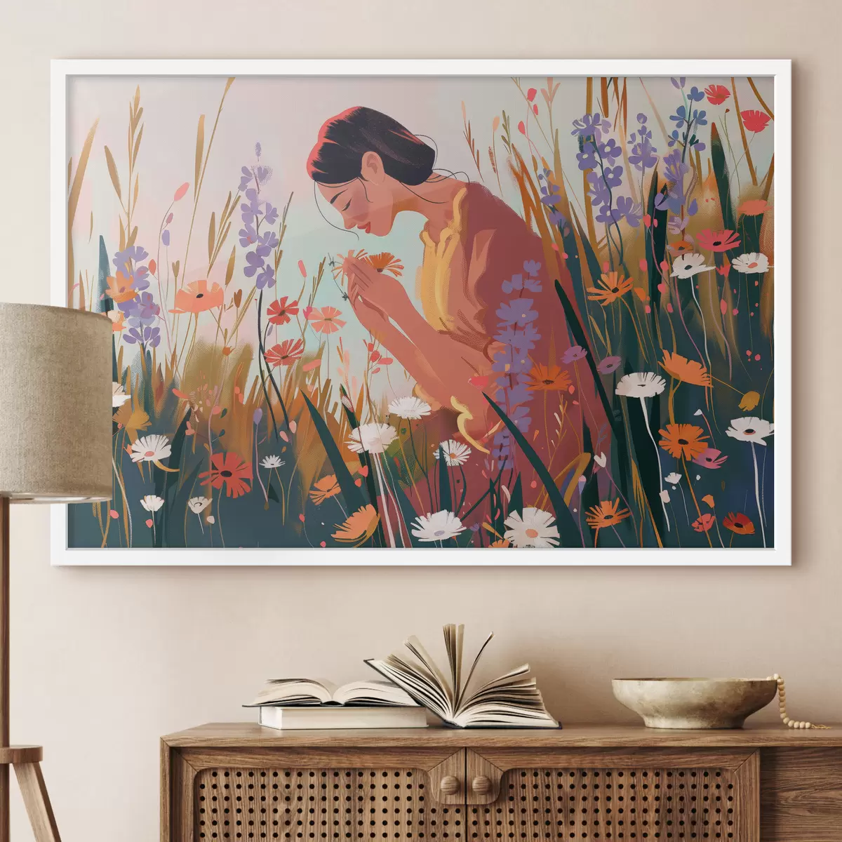 Plakatas Mergina lauke su gėlėmis Ne f38801