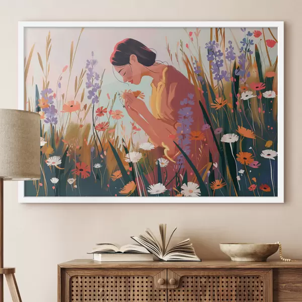 Plakatas Mergina lauke su gėlėmis f38801