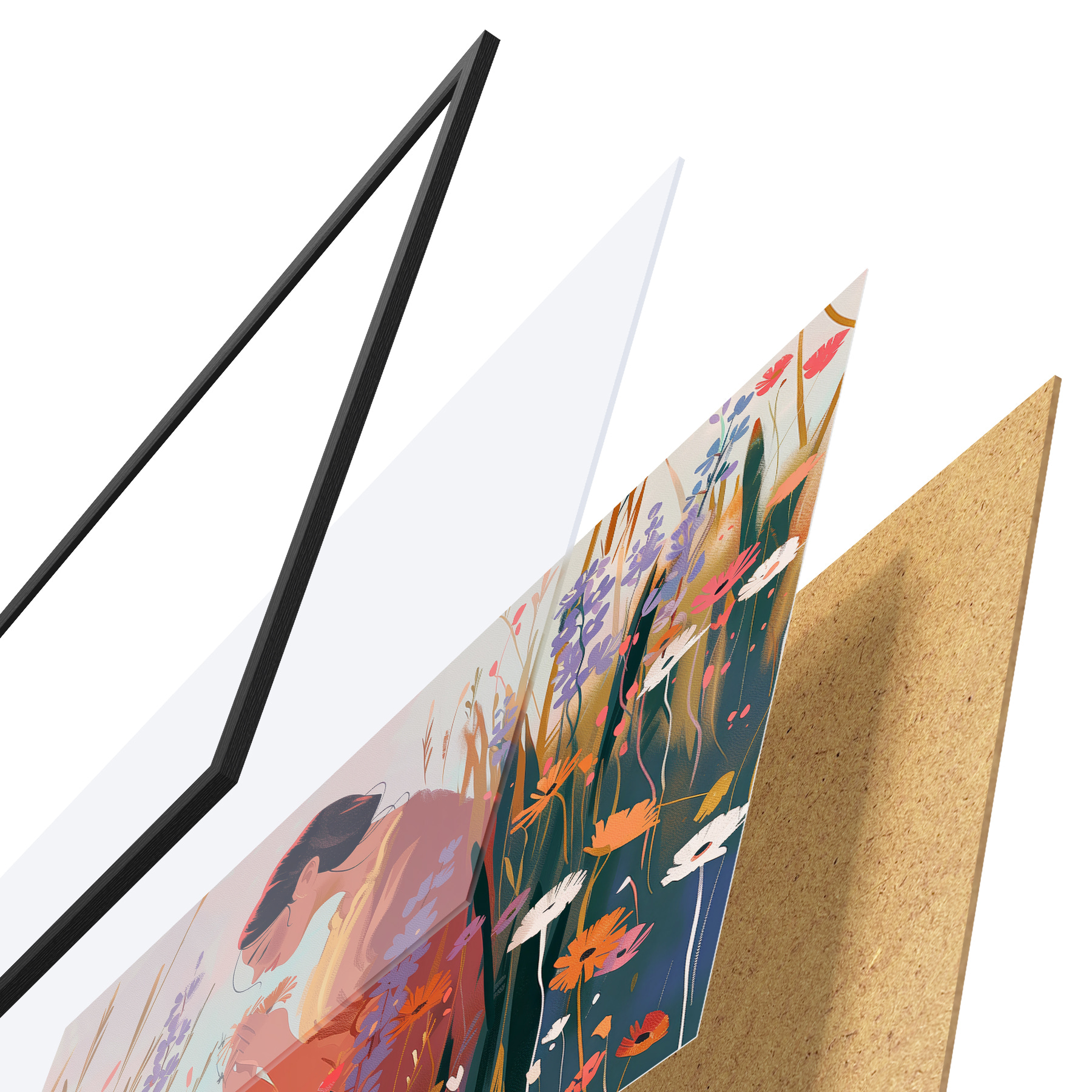 Plakatą sudaro rėmas, pleksiklas, atspausdintas vaizdas ir medžio drožlių plokštės pagrindas. Plakatą galima iš karto pakabinti ant sienos dėl kitoje pusėje esančių laikiklių.