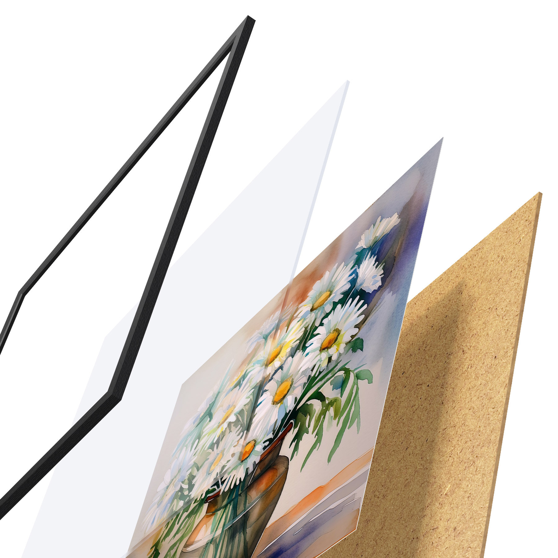 Plakatą sudaro rėmas, pleksiklas, atspausdintas vaizdas ir medžio drožlių plokštės pagrindas. Plakatą galima iš karto pakabinti ant sienos dėl kitoje pusėje esančių laikiklių.