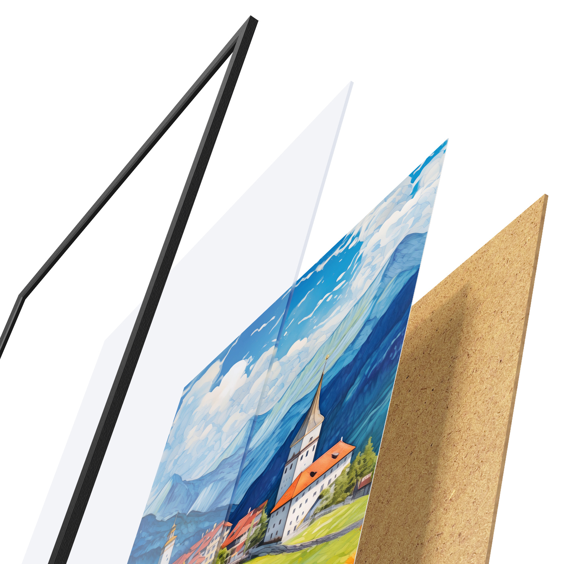 Plakatą sudaro rėmas, pleksiklas, atspausdintas vaizdas ir medžio drožlių plokštės pagrindas. Plakatą galima iš karto pakabinti ant sienos dėl kitoje pusėje esančių laikiklių.