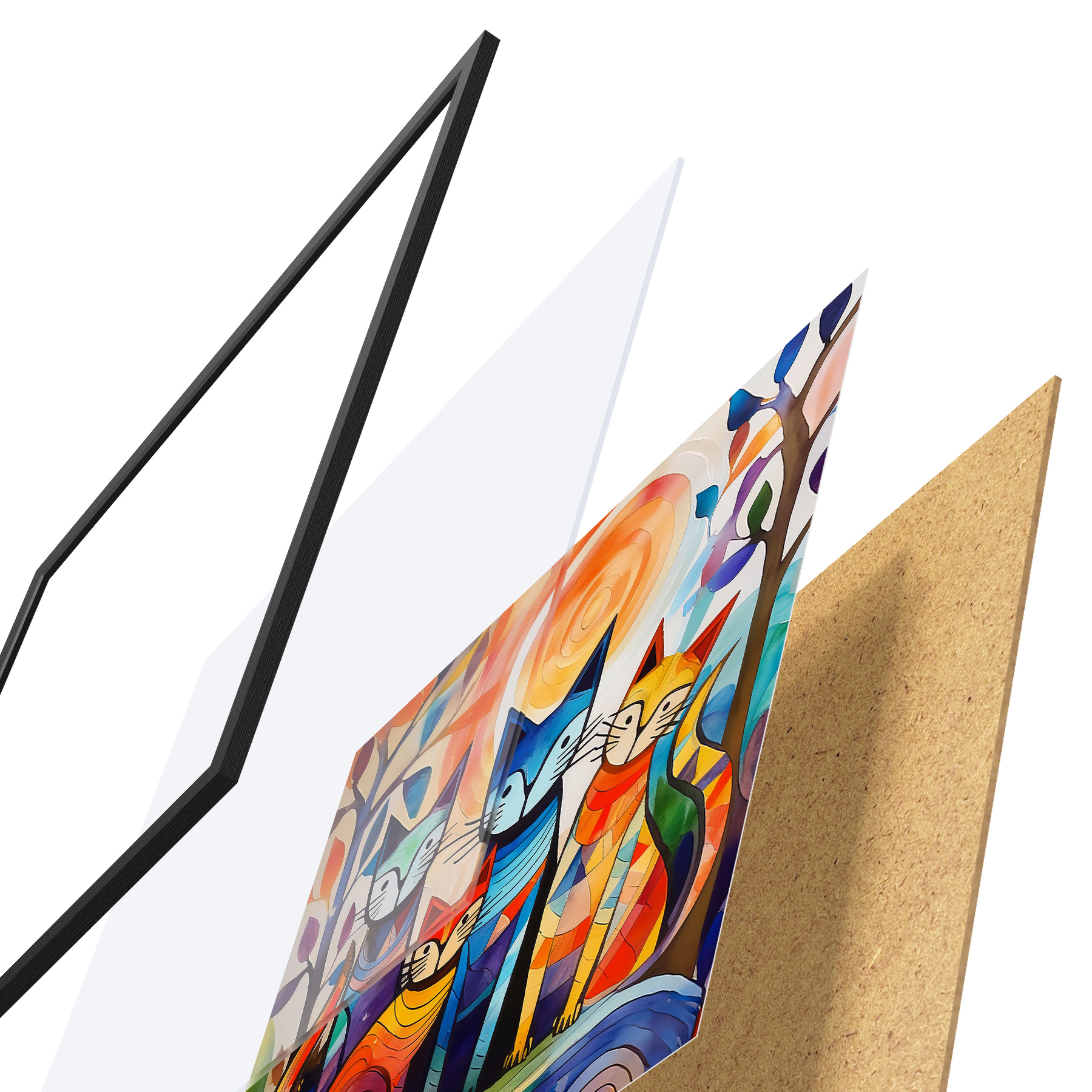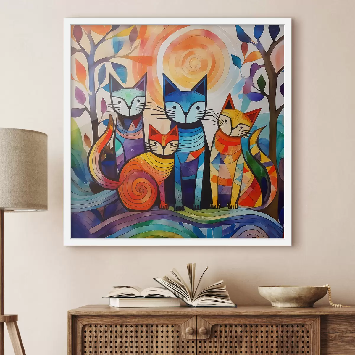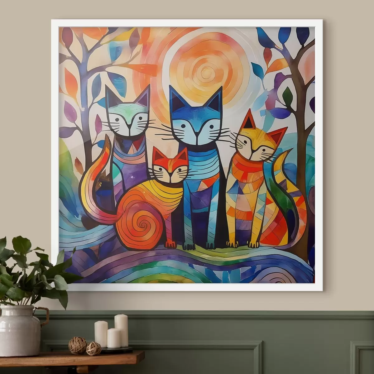 Plakatas Įvairiaspalvė abstrakcija su įdomiomis katėmis f38815